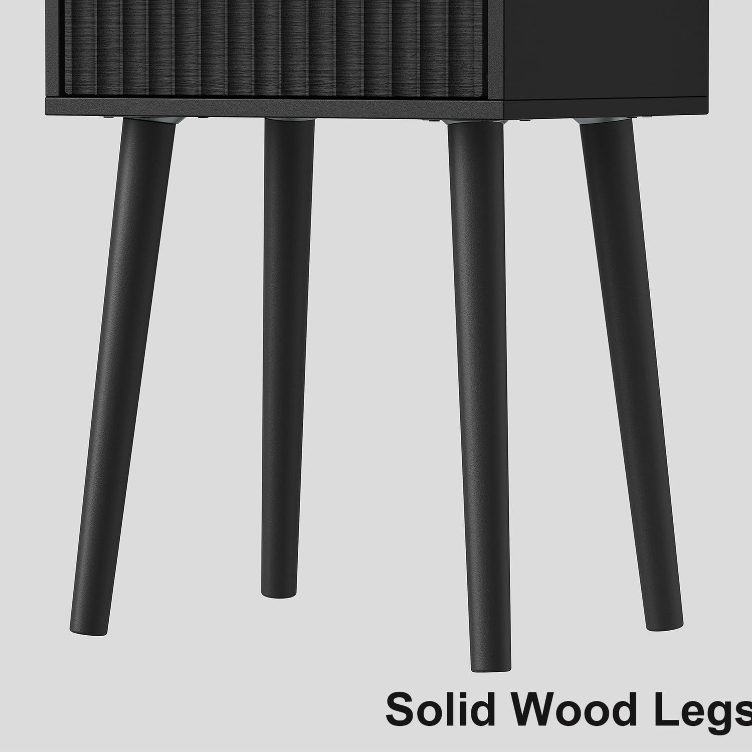 LAATOOREE Nightstand Set of 2, Small Bed Side Table with Fluted Door, End Table with Solid Wood Legs, Mid-Century Bedside Table for Bedroom Small Space