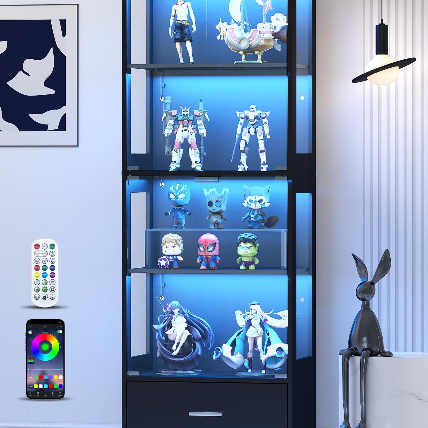 - 【Smart RGB Lighting】- Lamtor’s glass display cabinet features dynamic RGB lighting—no preset limits, just endless color magic. With a tap on your phone or remote, instantly bathe your treasures in any hue. Transform your den, game room, or gallery into an immersive experience. Watch your collectibles glow and become mesmerizing focal points, day or night.