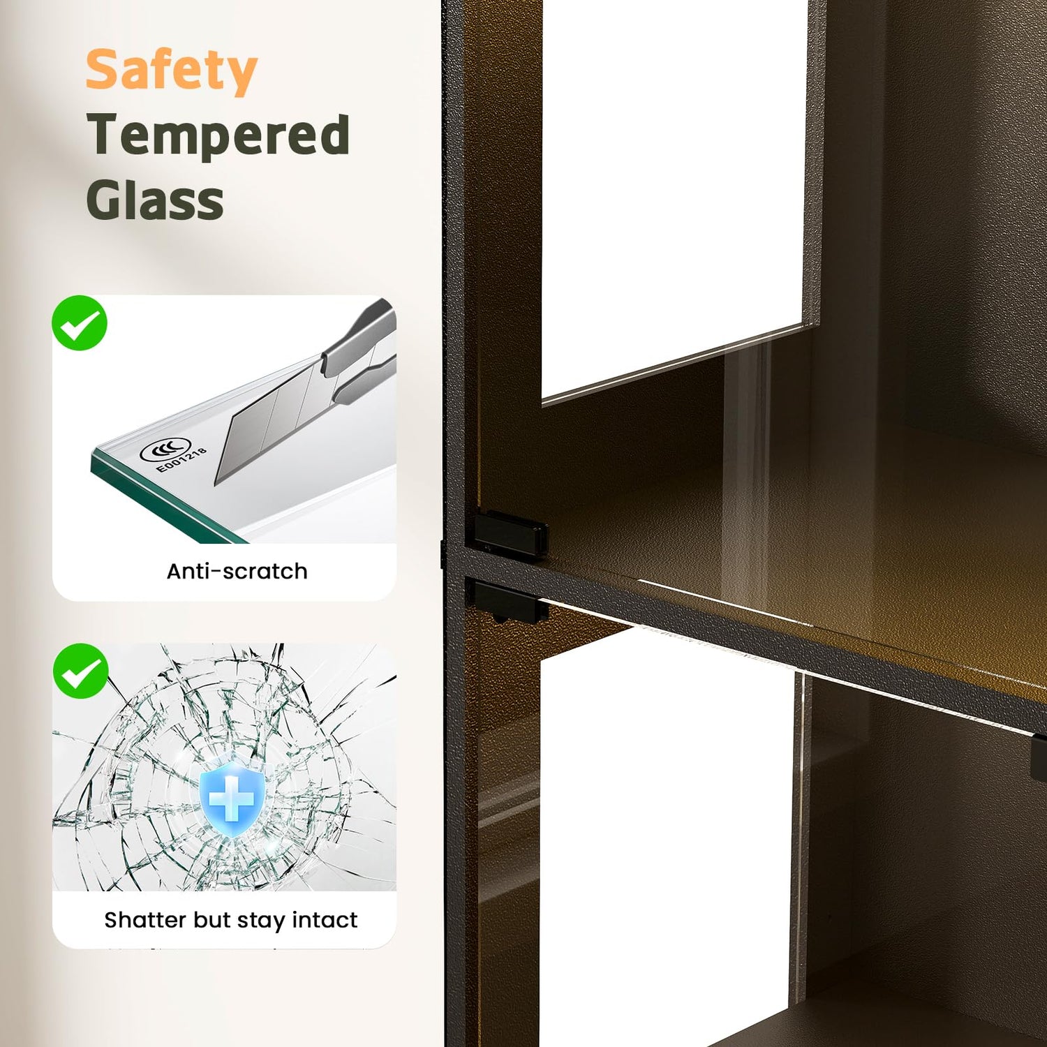 - 【Safety Tempered Glass】-Crafted from premium tempered glass, this curio display cabinet offers fortress-like protection that’s scratch-resistant and shatter-safe. Yet its ultra-transparency showcases every intricate detail of your collection, like a museum case. Display fearlessly—your valuables deserve this clarity and care.