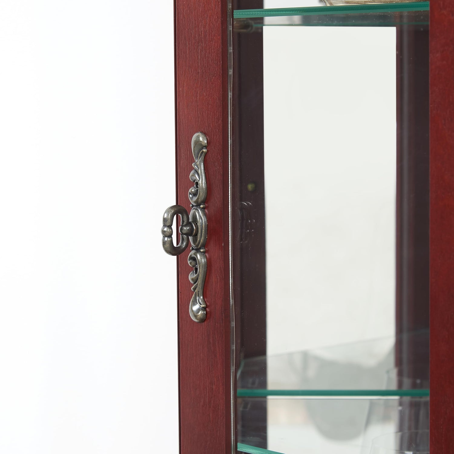 - 【Internal Lighting】Display your collectables within the curio display cabinet day or night by engaging the internal lighting accent system.Enjoy viewing your treasures at nighttime with the internal lighting system, and, when coupled with the mirrored back panel, there is a pleasing reflective glow to highlight the contents from any angle. The lighting system uses a standard E26 light bulb (not included).