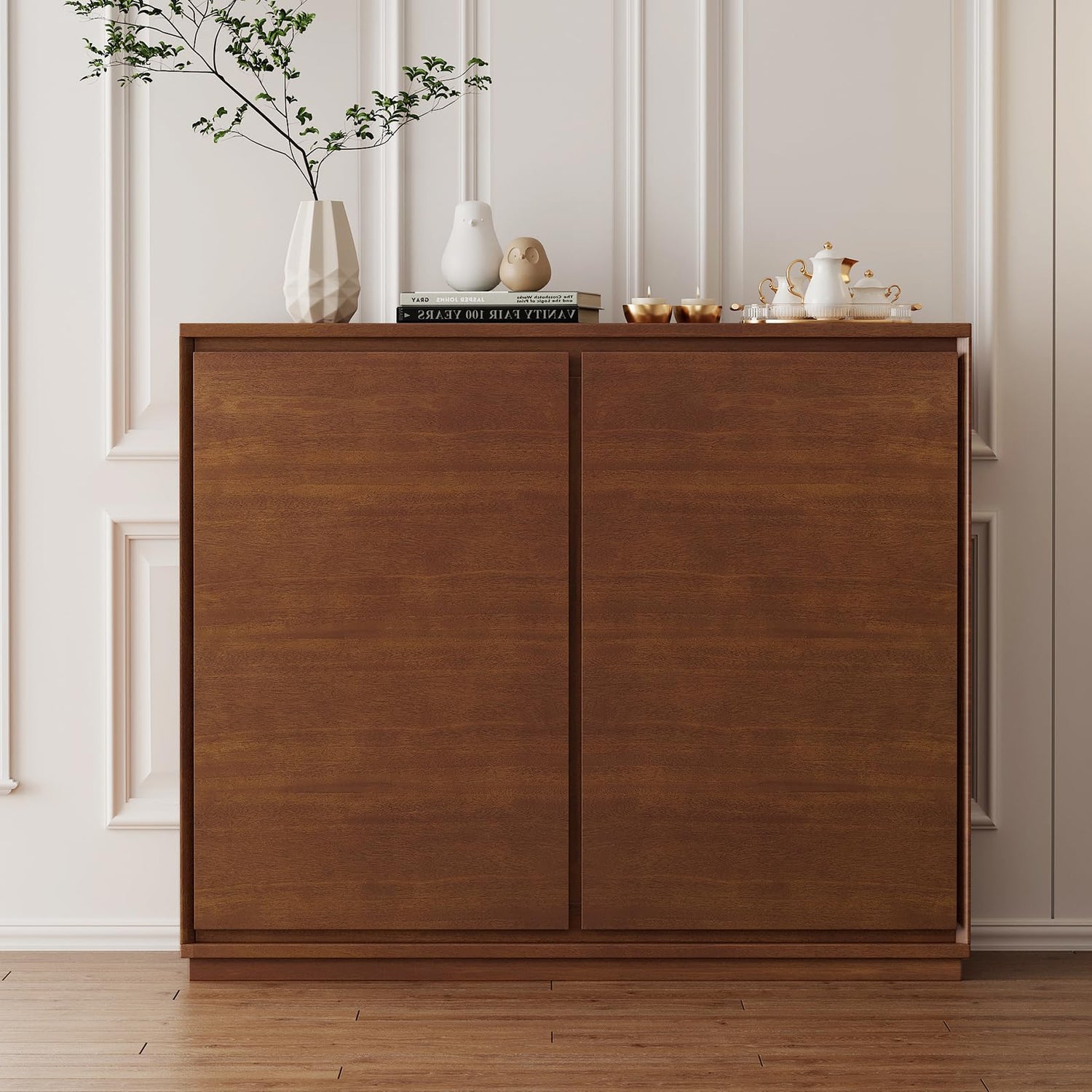 - 【Mid Century Modern Sideboard Buffet Cabinet】This wood grain sideboard combines vintage style with mid-century modern aesthetics, making it perfect for the living room, entryway or kitchen dining room.2 spacious cabinet doors provide ample storage space.From kitchen dishes to living room books and decorations,this cabinet has you covered