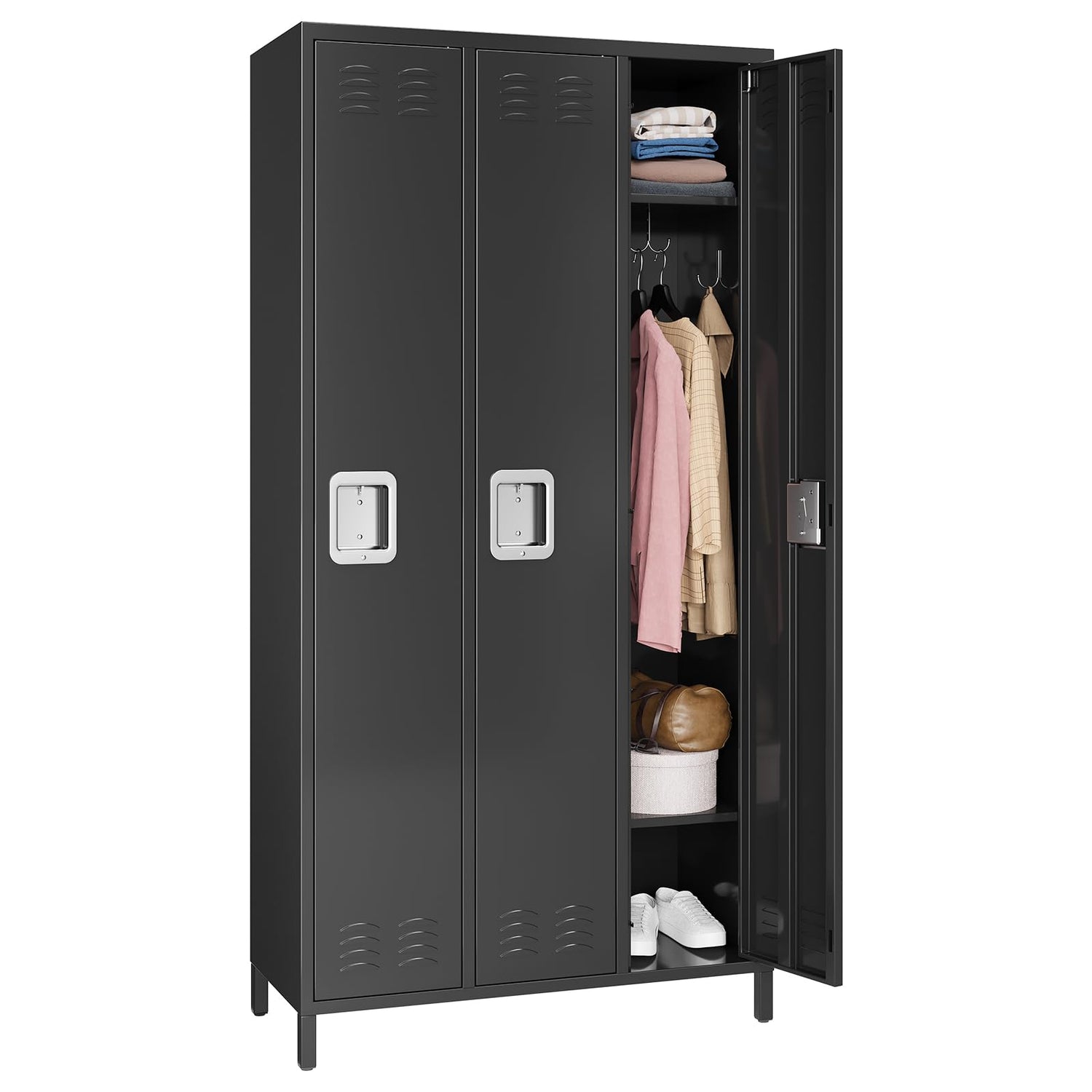 Loumernhant 72" Tall Metal Garage Storage Cabinets with Safety Lock,3 Doors Storage Lockers Combination,Metal Lockers Perfect for Homes,Gyms,Factories,Offices,Warehouses,Garage.Black.