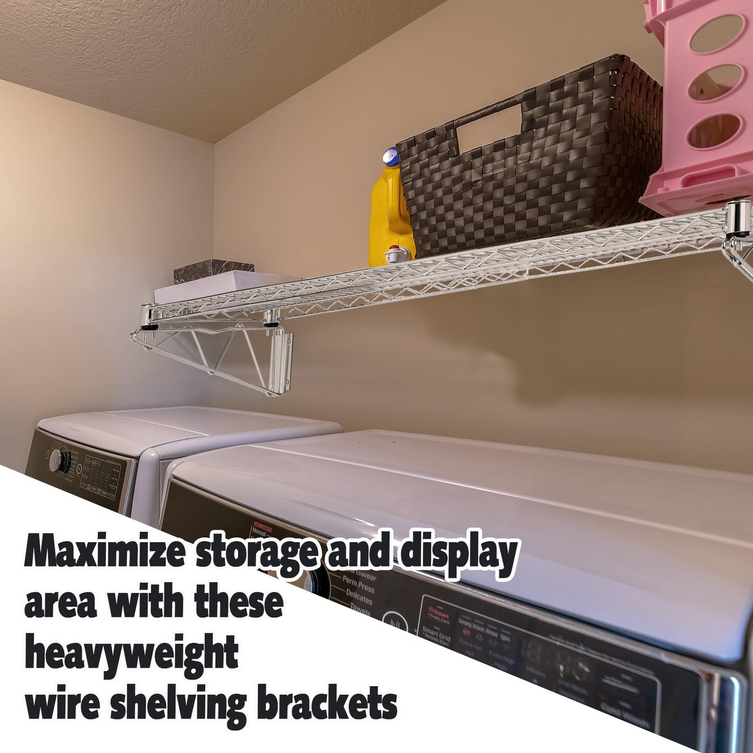 - Package Includes: you get a wall mounted wire mesh shelf kit that includes a 14-inch deep x 48-inch wide wire rack, two wall mounted single shelf brackets (18"L x 8"W), and some included mounting hardware, which makes the kit complete and easy to install