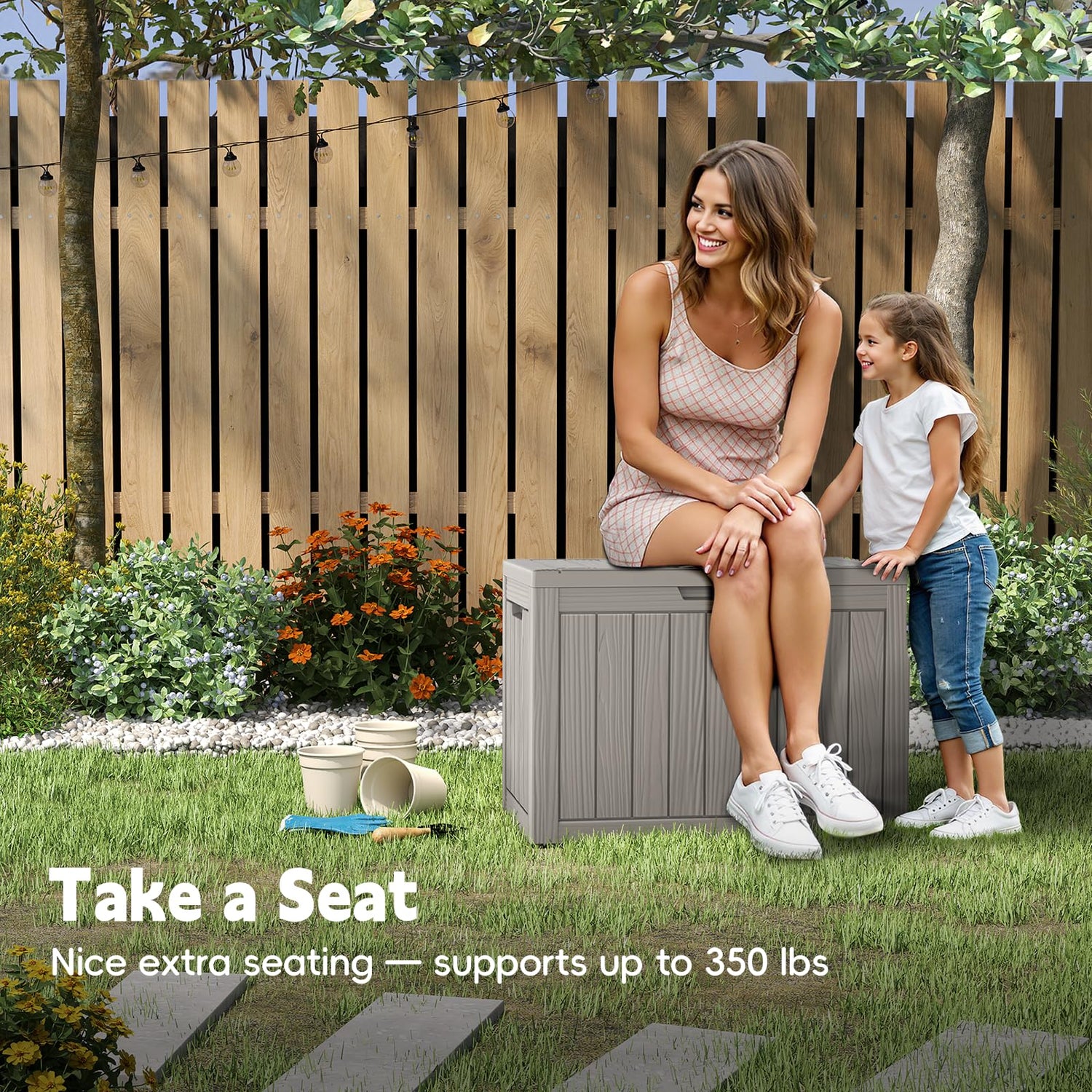 - Heavy Duty and Multi-Functional: Constructed from high-strength resin, this deck box supports up to 350 lbs. It can double as a patio side table or bench, providing versatile and ample storage in any outdoor space.