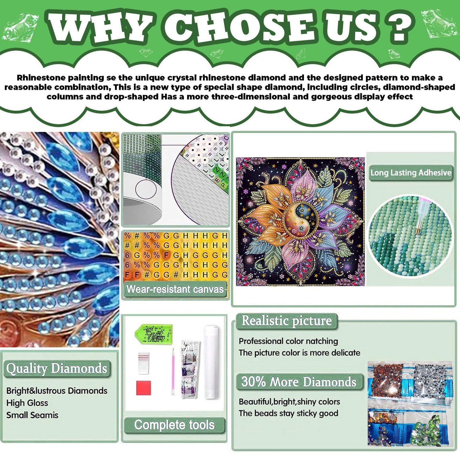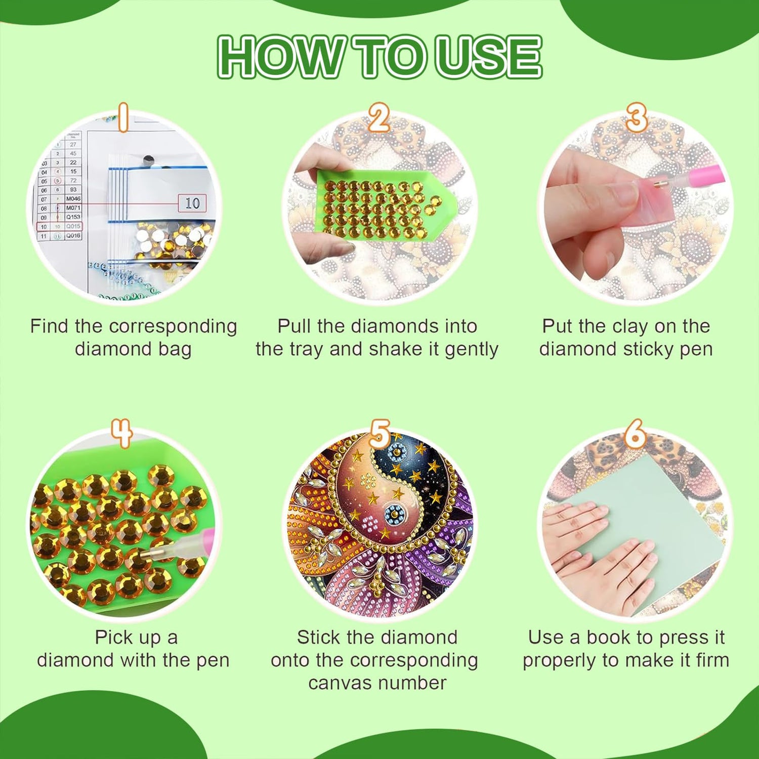 - 【What You Will Get】Special shape diamond painting kits:1 high definition canvas , 1 diamond painting pens, 1 adhesive, 1 plastic tray and enough crystal diamonds (we added an additional 30% of rhinestone diamonds to prevent the occurrence of insufficient diamonds)