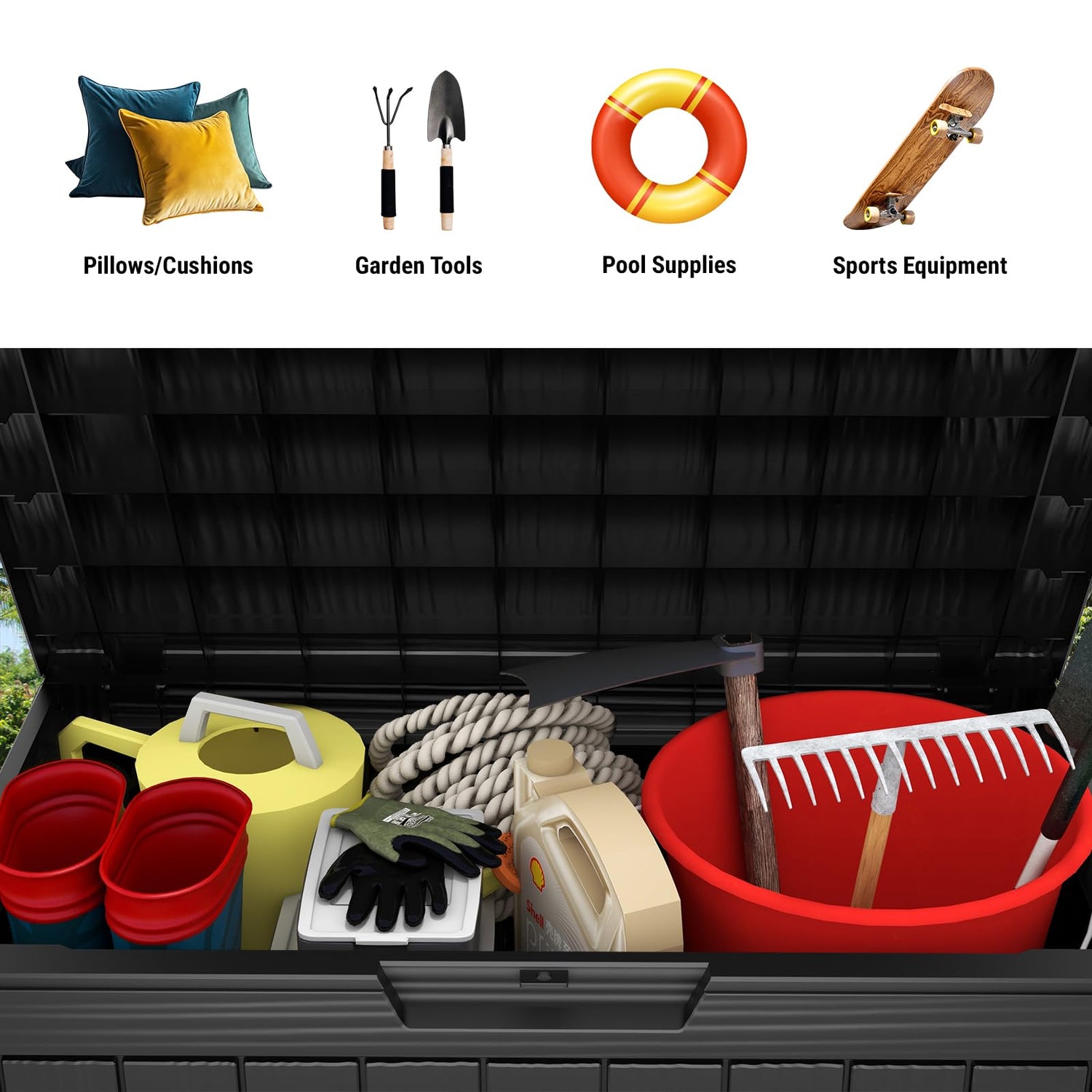 • 【Note】- For best protection, always keep the lid securely locked during rainy or windy weather to prevent hinge damage and contents from getting wet, please carefully compare the internal dimensions of the storage box with the size of your items to ensure a proper fit