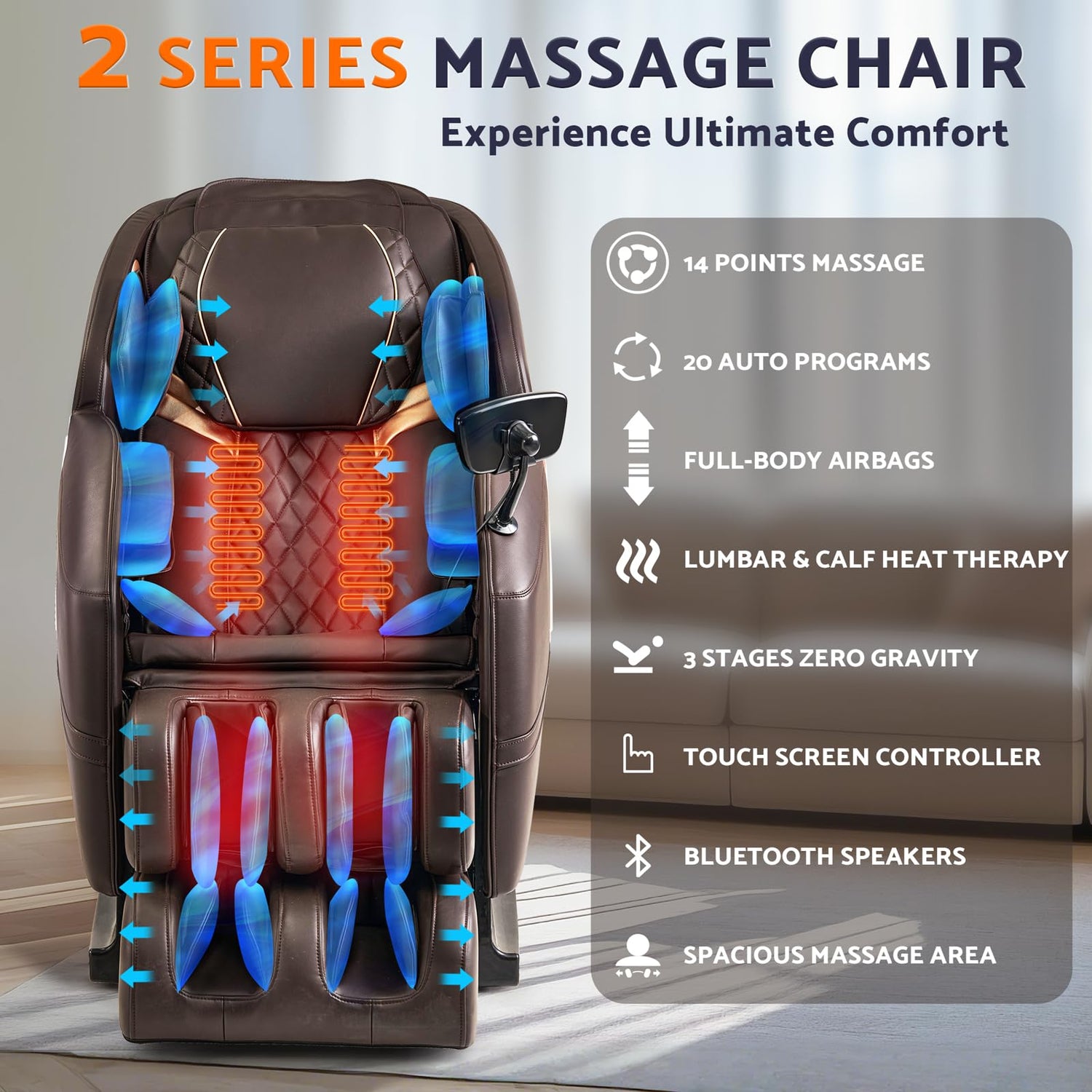 - Touchscreen Controller & Bluetooth Speaker: Designed with convenience in mind, our massage chair is equipped with an intuitive touchscreen controller, making it easy to personalize your massage settings. It also includes a built-in Bluetooth speaker, allowing you to enjoy your favorite music or calming sounds as you relax, enhancing the overall massage experience.