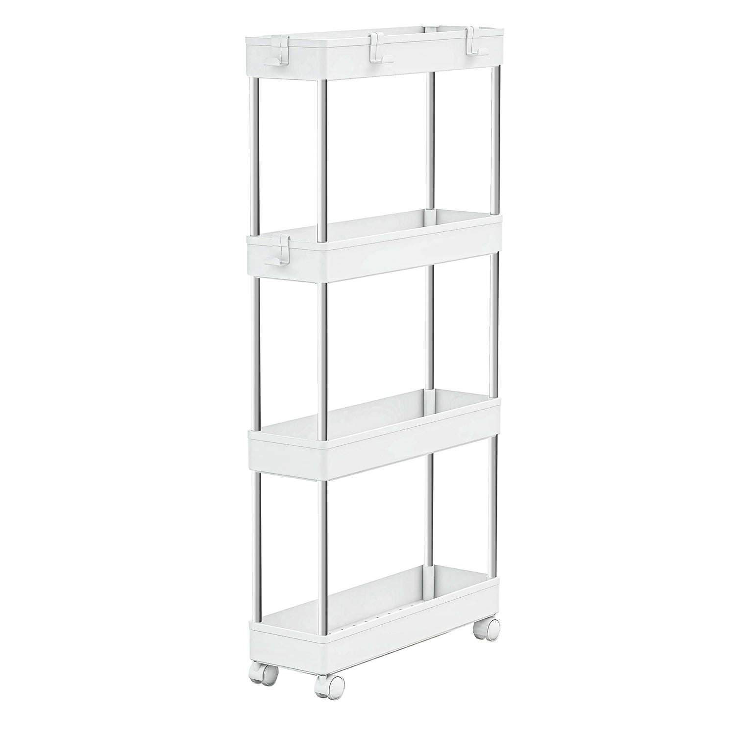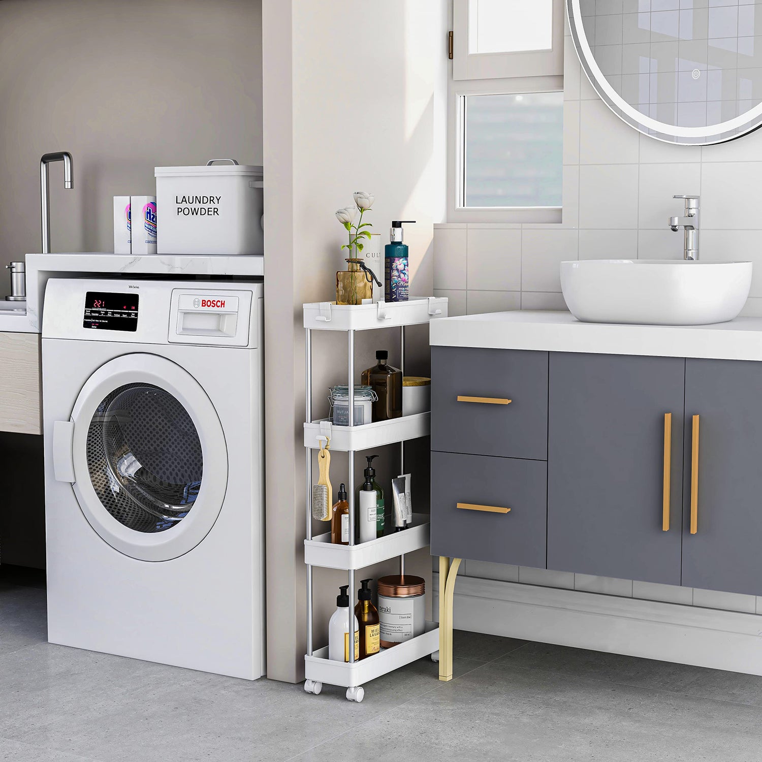- Keep your kitchen, laundry room, bathrooms, and closets neatly organized with these functional 4 tier slim storage cart organizer.