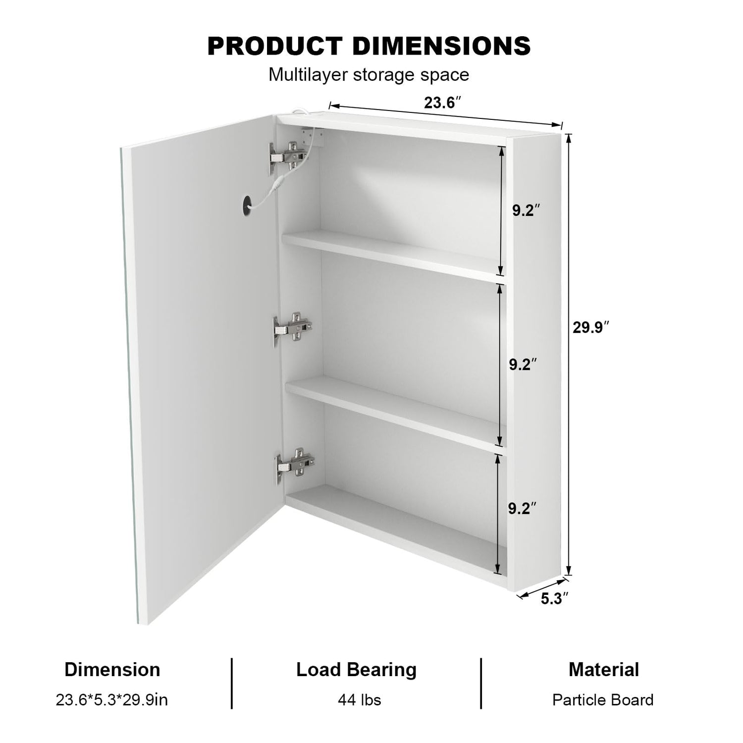 - 【Led Medicine Cabinet Mirror for Bathroom 】 Bathroom mirror cabinet is made of E1 grade particle board and copper-free silver mirror with LED light, high-quality material moisture-proof and waterproof, suitable for bathroom environment. MDF backplane for maximum stability. Size: 19.6 X 27.5 (inch), please measure the bathroom wall size before purchasing. The led medicine cabinet is an indispensable bathroom partner in your life.