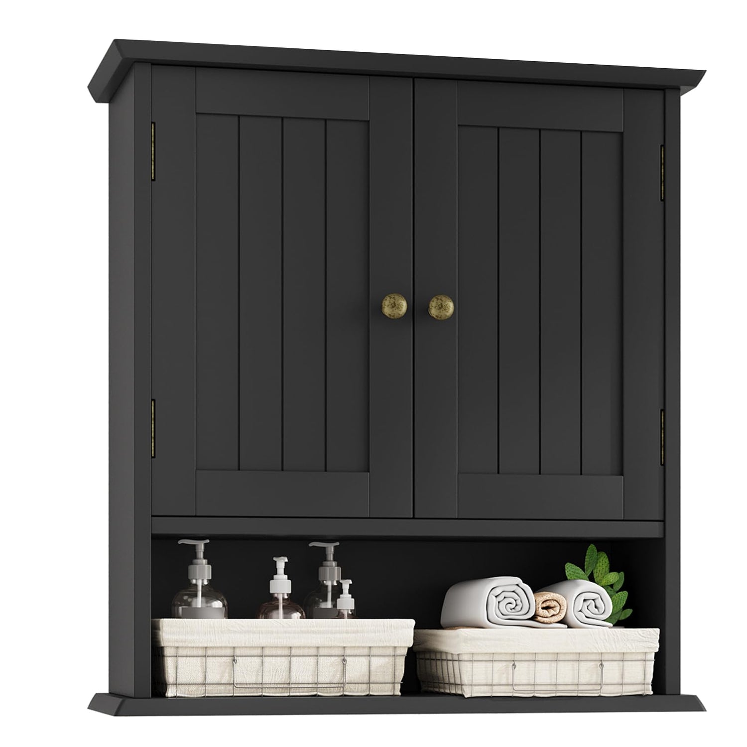 Mino Kesper Bathroom Wall Cabinet, Bathroom Cabinet Wall Mount with 2 Doors and Open Shelf, Over The Toilet Wall Storage, Wooden Medicine Cabinets