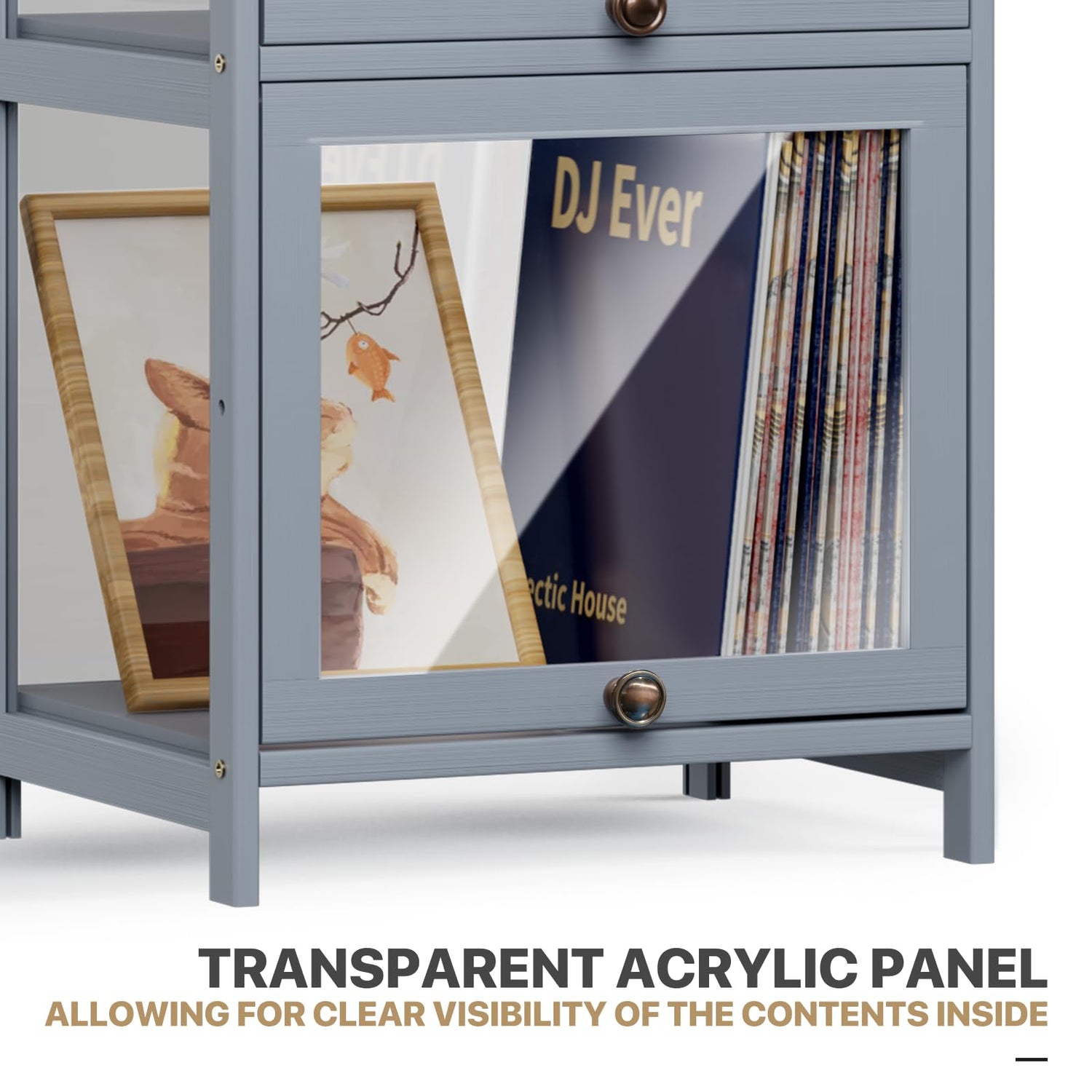 - Large Capacity: This storage cabinet does not take up space but has a large storage space, suitable for displaying figures, books, photos, artworks, decorations, etc