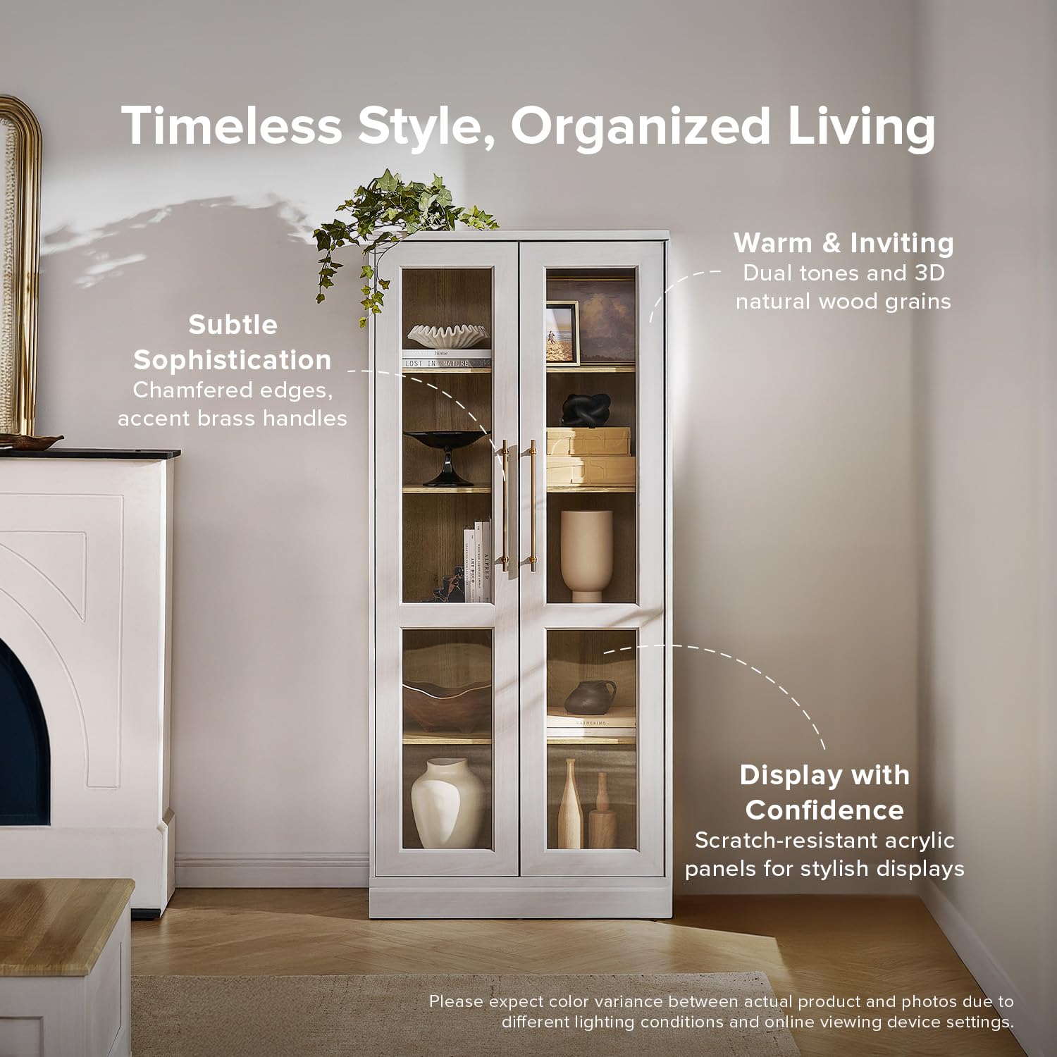 mopio Blake Tall Display Cabinet, Kitchen Buffet Pantry Cupboard, Trophy Display Case, Storage Cabinet Scratch Resistant Acrylic, Modern Farmhouse Curio Organizer (White Oak Acrylic, Set of 2)