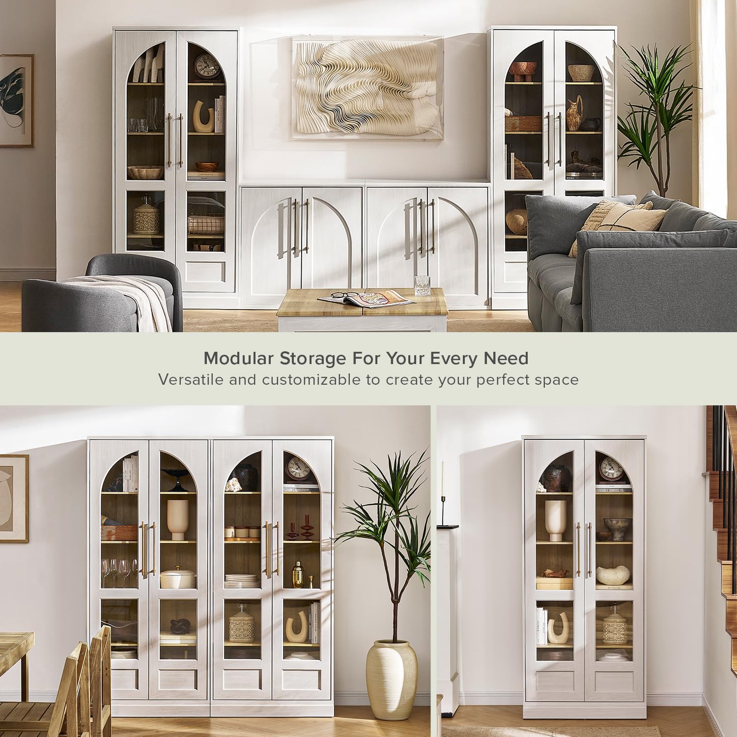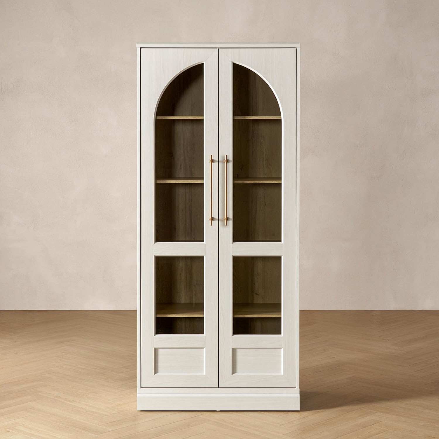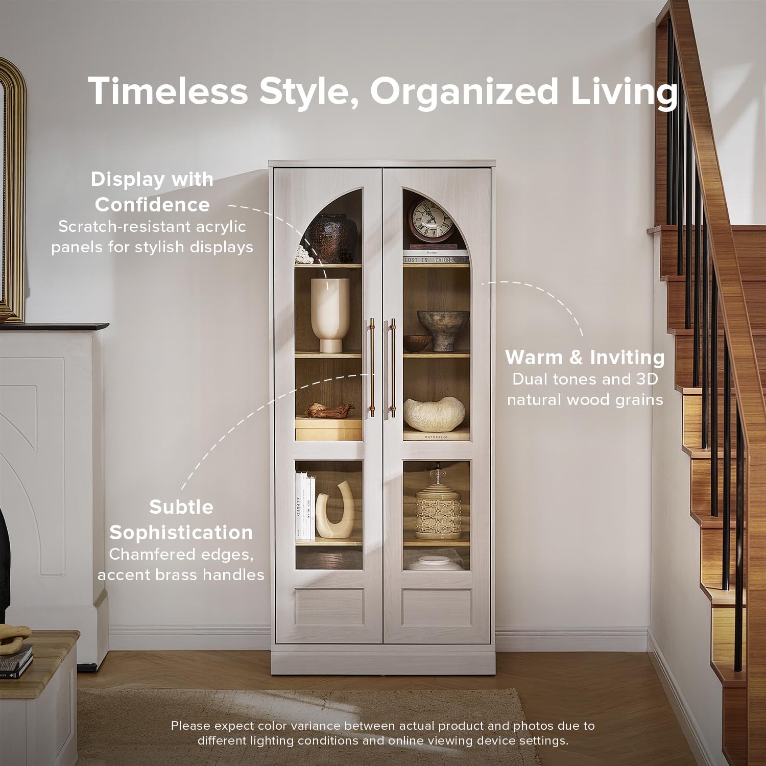 mopio Blake Tall Display Cabinet, Kitchen Buffet Pantry Cupboard, Trophy Display Case, Storage Cabinet Scratch Resistant Acrylic, Modern Farmhouse Curio Organizer (White Oak Arched, Single)