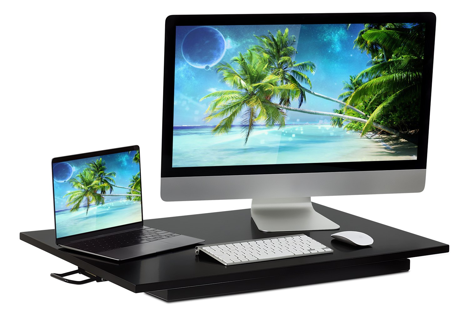 - WORK HEALTHY: A desk that adjusts to your working style. Make smooth, easy and fluid height adjustments throughout the day with this sit stand desk converter. Improve posture, boost productivity and engage your core by sitting and standing.
