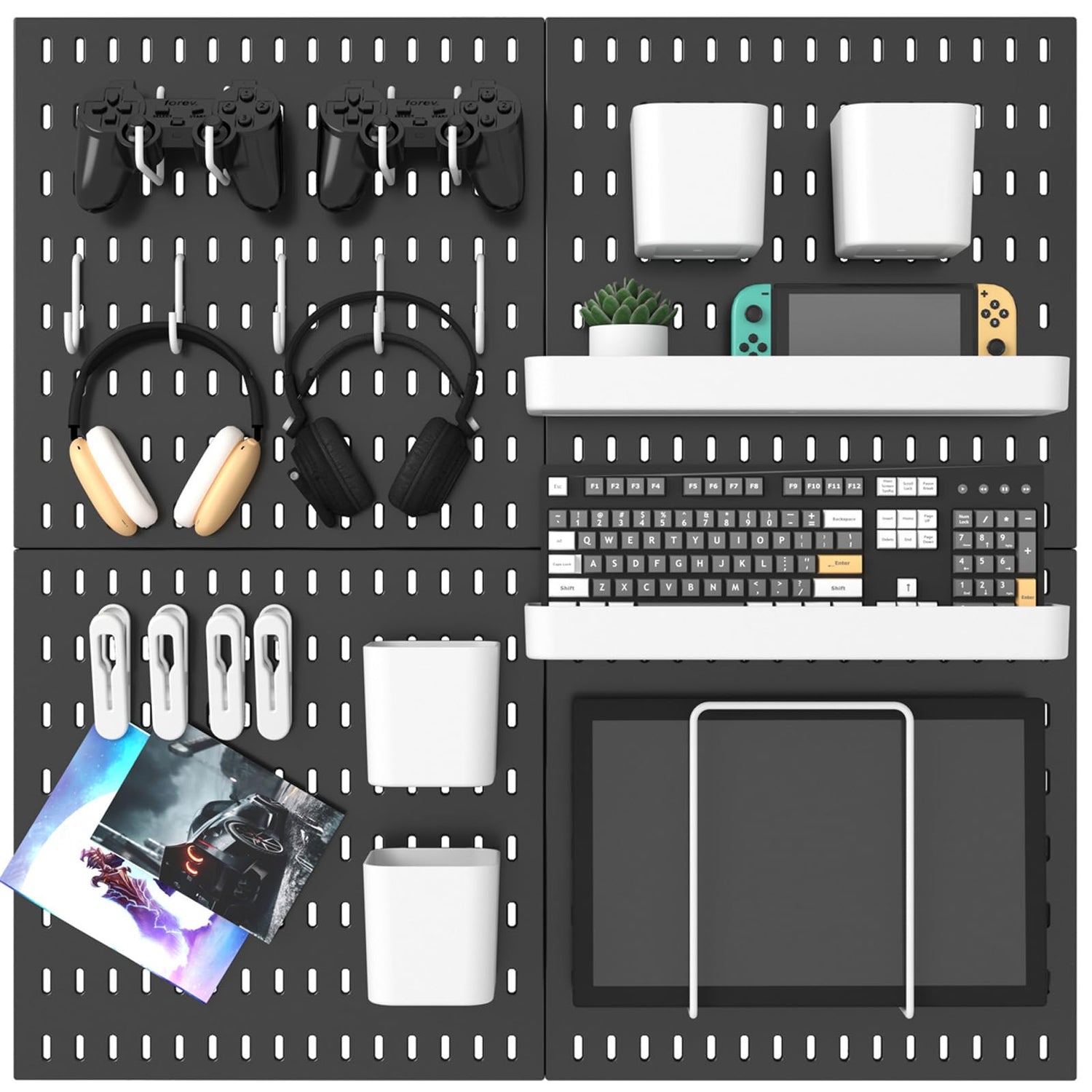 MULSAME Pegboard Combination Kit, 25.2" x 25.2" Wall Mounted Storage Set with 4 Pegboards & 20 Accessories Hanging, Peg Boards Organizer