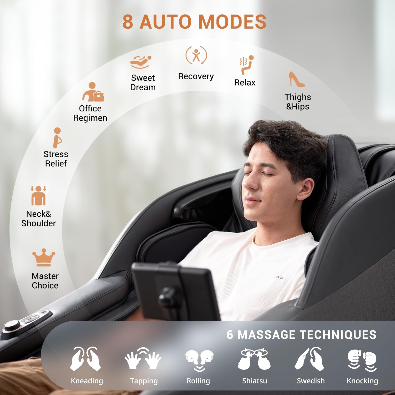 - ๐๐๐ซ๐จ-๐๐ซ๐๐ฏ๐ข๐ญ๐ฒ ๐๐จ๐ฌ๐ข๐ญ๐ข๐จ๐ง๐ข๐ง๐ ๏ผReduces spinal pressure by elevating the legs, providing enhanced comfort and a sense of weightlessness for a more effective massage. Includes tailored programs like โOffice Regimenโ and โStress Relief,โ addressing different relaxation and recovery needs with the push of a button.