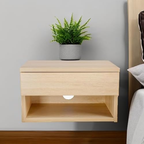 Nathan James Jackson Wall Mounted Floating Bedroom Nightstand with Storage Drawer and Modern Open Shelf Cubby, Light Oak Wood