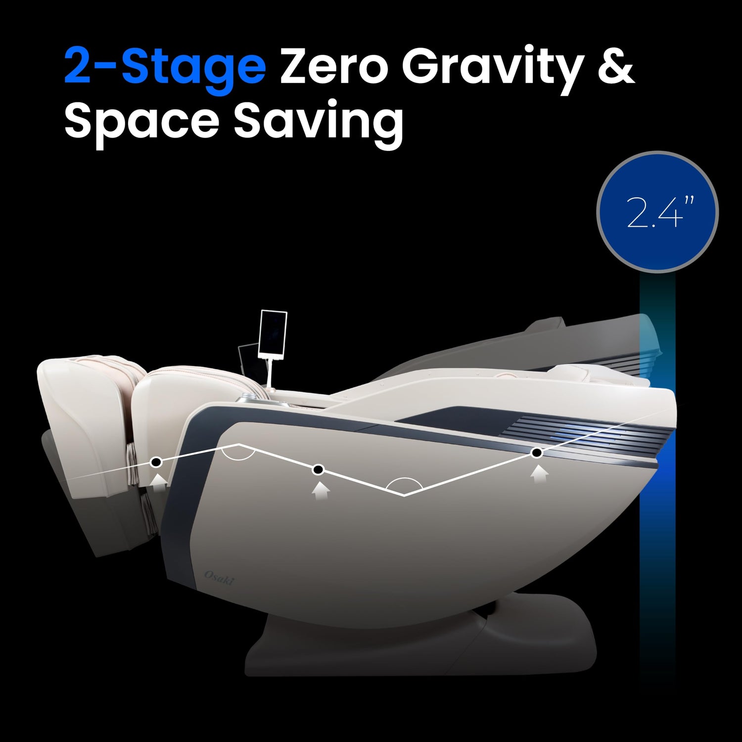 - SPACE SAVING TECHNOLOGY and ZERO GRAVITY: The Zero Gravity Positions in the Osaki Monarch LE offers a comfortable position akin to the weightlessness experienced by astronauts, minimizing the pressure on your spine. With this technology, the massage chair is also utilizing Space-saving Technology that allows the chair to be placed 2.4 inches away from the wall and still smoothly transition into a full recline.