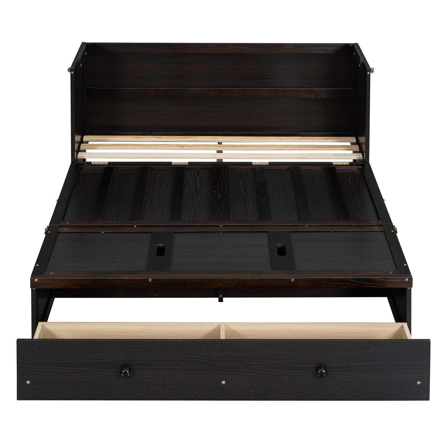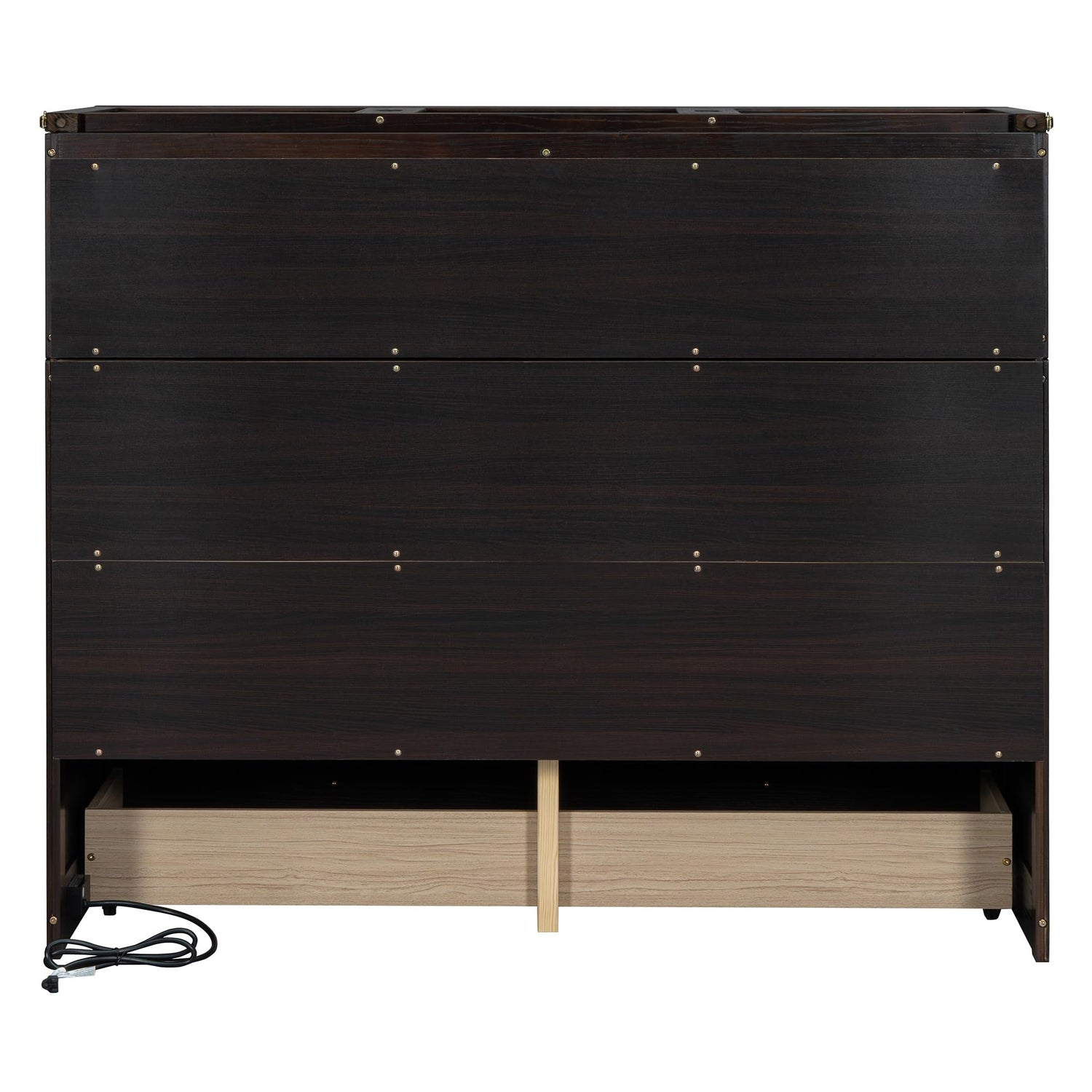 P PURLOVE Full Size Murphy Bed,Solid Wood Murphy Bed Frame with USB Port and a Large Drawer,Murphy Cabinet Bed Espresso
