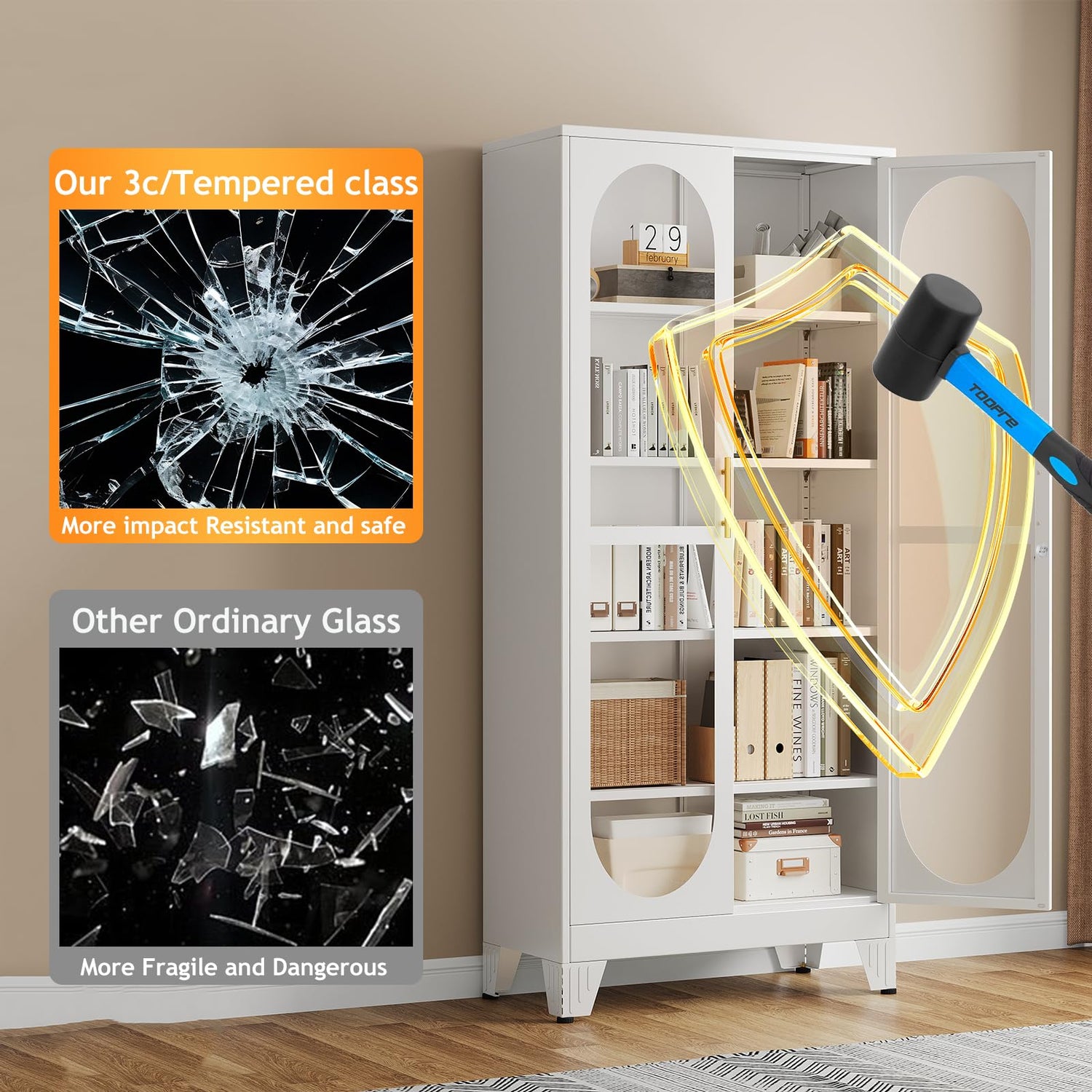 - **High-quality Material**- This showcase display cabinet is constructed from upgraded, thickened heavy-duty steel, providing exceptional resistance to deformation and a high load-bearing capacity. The surface of the china cabinet features an environmentally friendly powder coating that not only facilitates easy cleaning but also effectively resists rust and corrosion for long-term worry-free use. Can store books, antiques, crafts, wine, trophies, collectibles, etc.