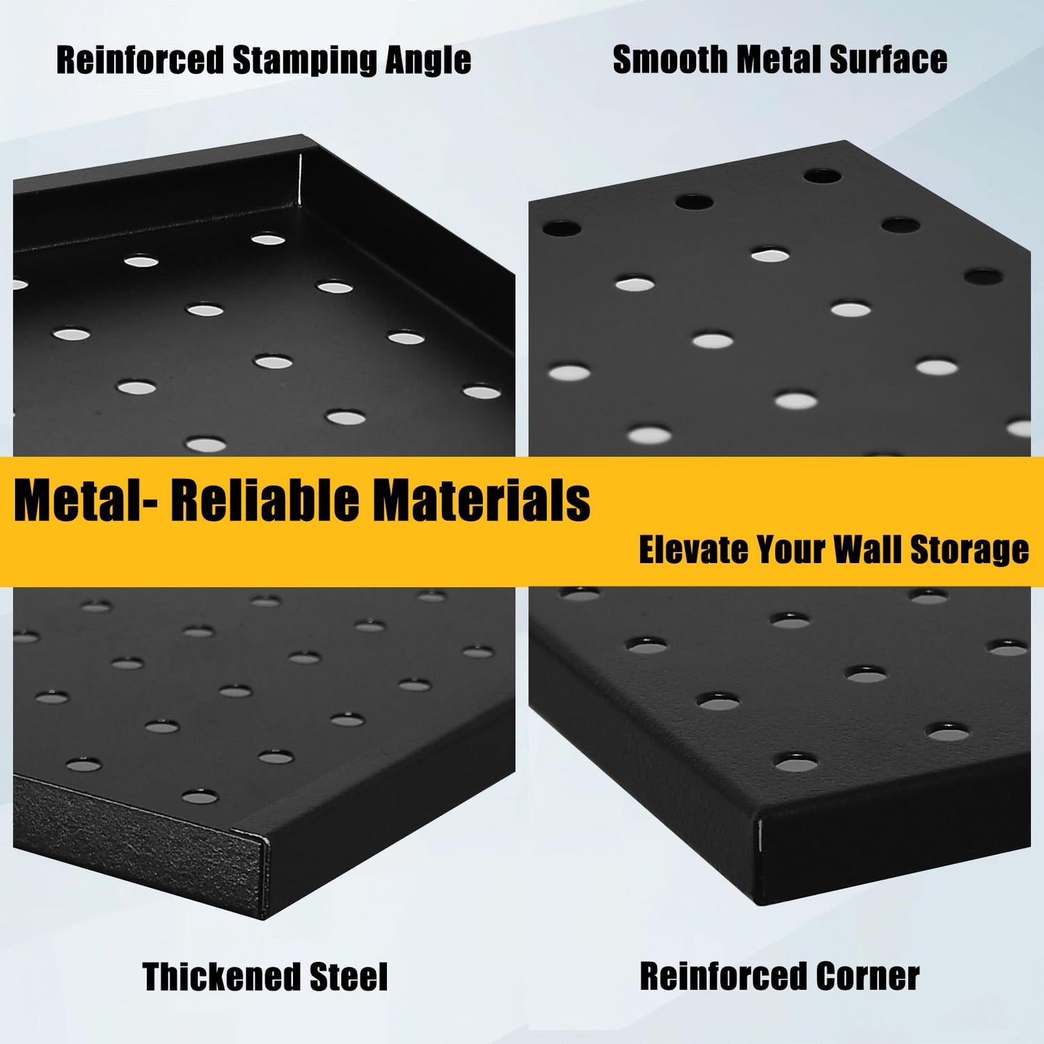 - Metal Pegboard: Our peg board panels are made of high quality steel with a powder coated finish that is strong. The total load capacity of 6 pegboards can reach 600 lbs! With a single pegboard's load capacity of 100lbs, there's no need to worry about shaking and falling anymore