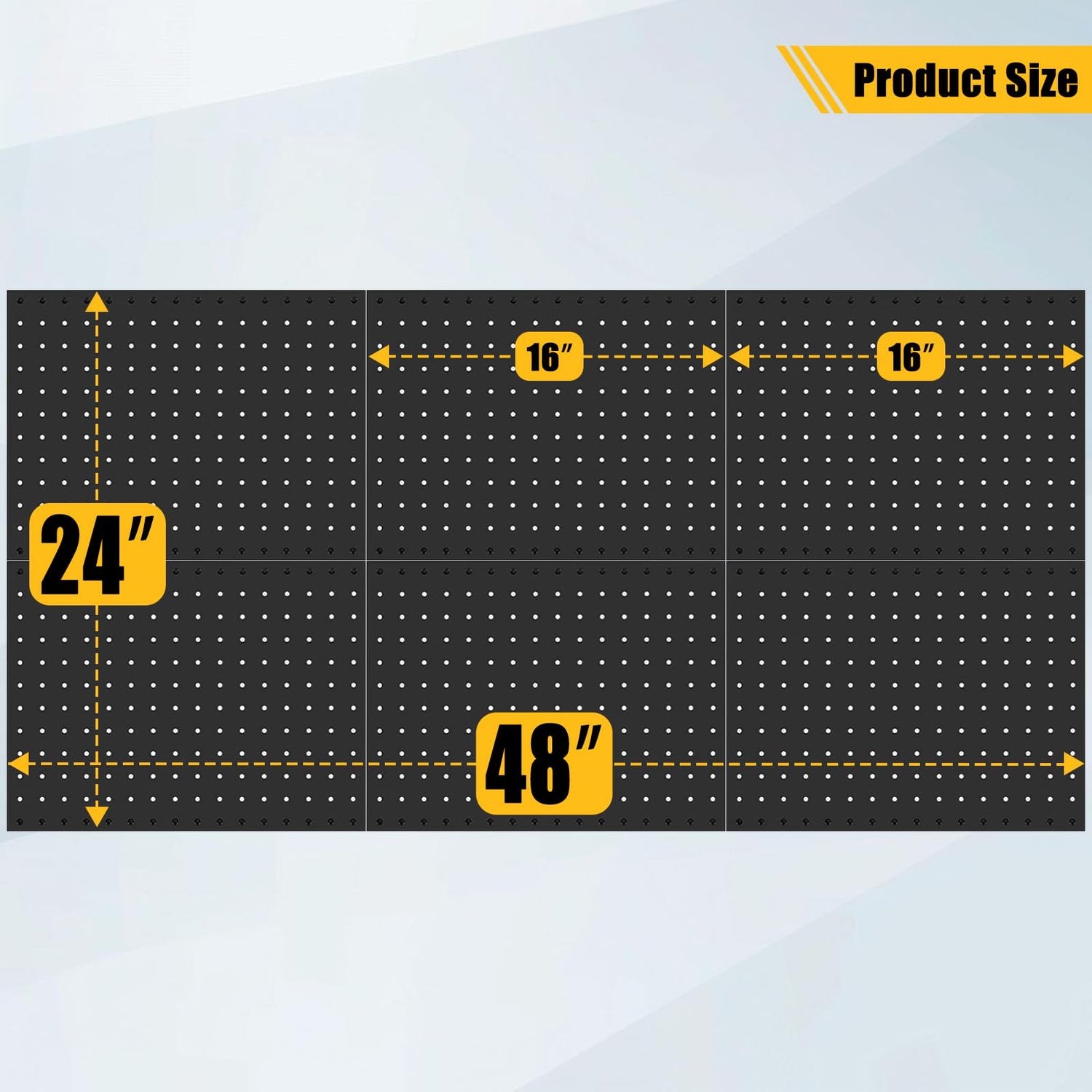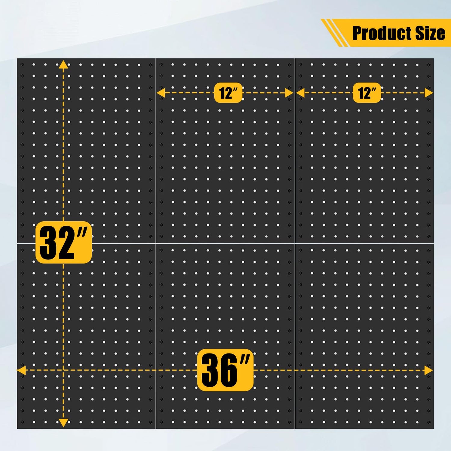 - Great for Tools Organization: This garage storage pegboard system can be DIY according to your storage needs. Each 16 x 12 inch pegboard with 1/4 inch holes, 6 pegboards can form a 48 inch x 24 inch / 72 inch x 16 inch pegboard wall. Suitable for organizing garage tools or garden tools and all kinds of tools. A nice choice for storing and holding your tools in kitchen, garage, utility room, basement or shed