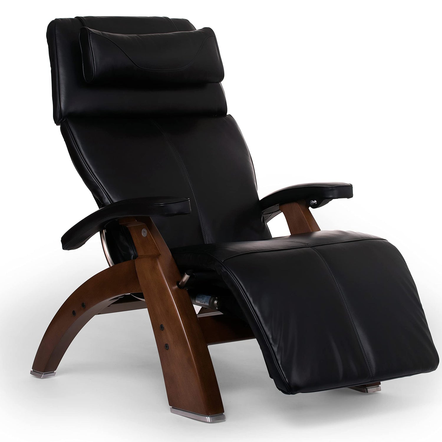 Perfect Chair Human Touch PC-610 Omni-Motion Classic Power Recline Zero Gravity Recliner Supreme Upholstery Package Walnut Wood Stain - Black Premium Leather