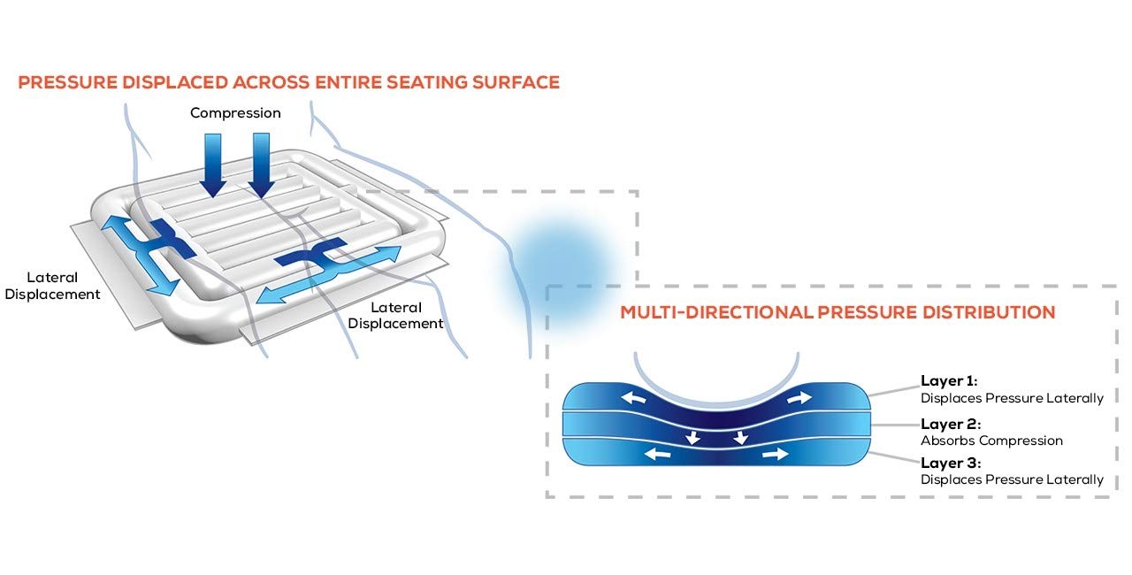 - 3D EasePoint fluid-cell Seat Cushion - Proprietary and patented fluid-cell cushion that is hermetically sealed. It displaces against pressure in three dimensions by distributing pressue across the entire seating surface, eliminating harmful pressure points.
