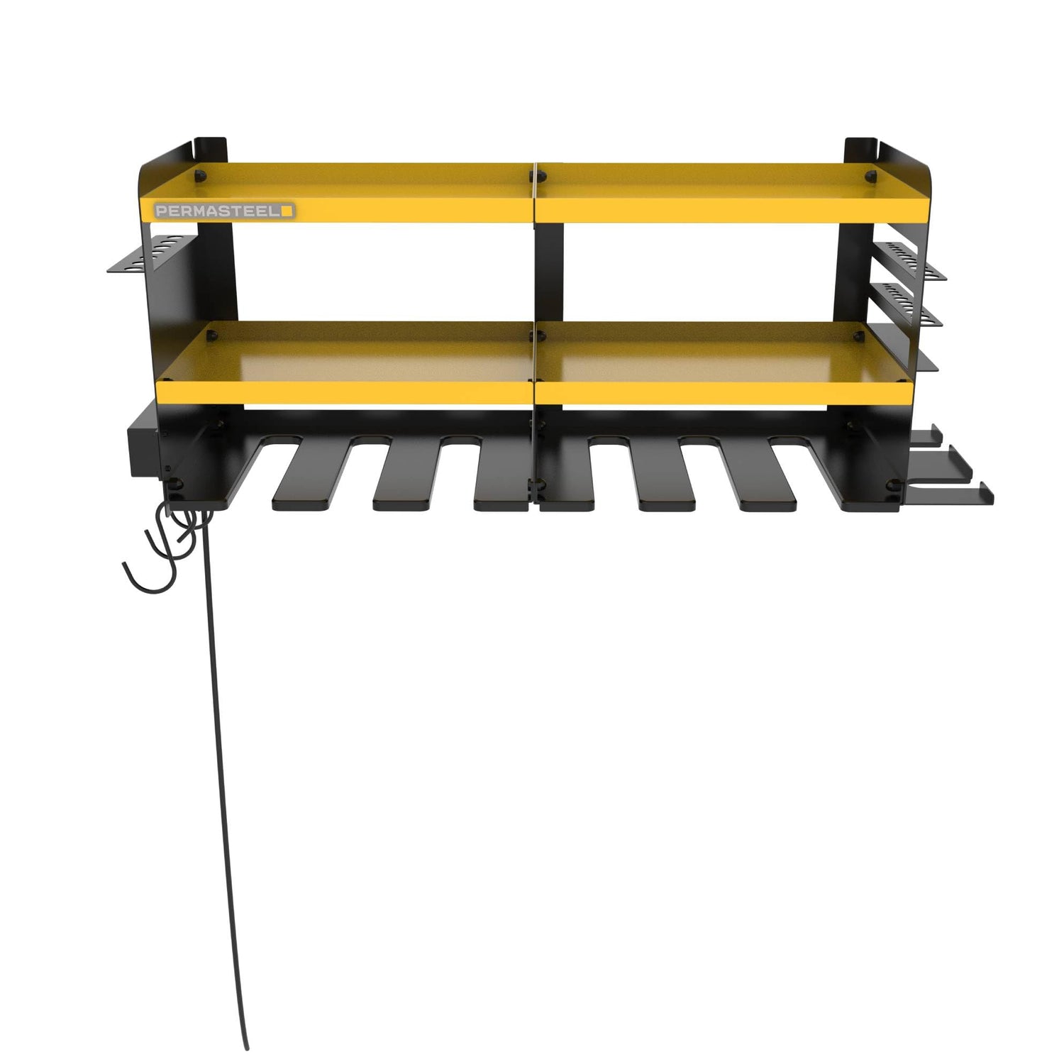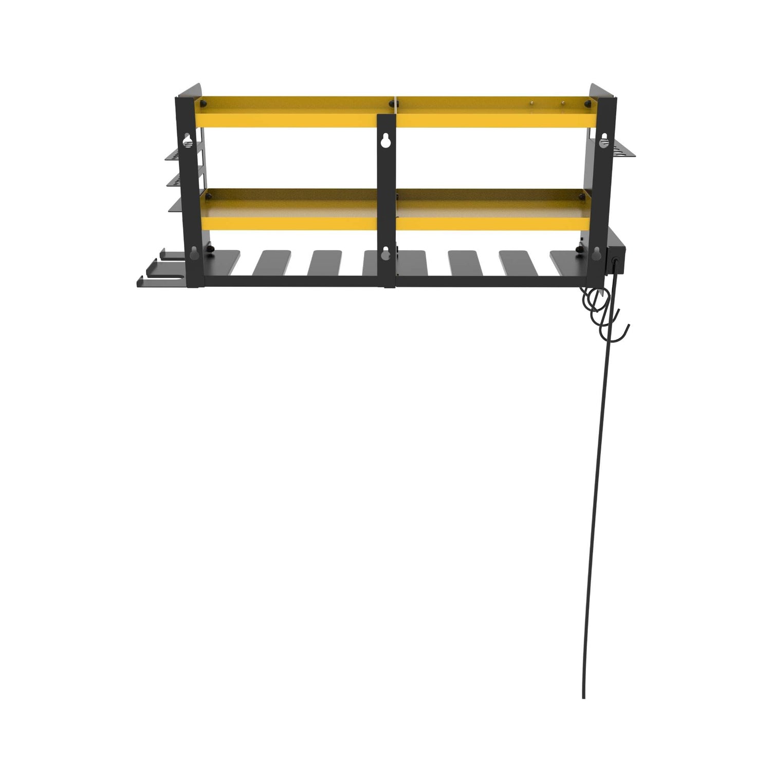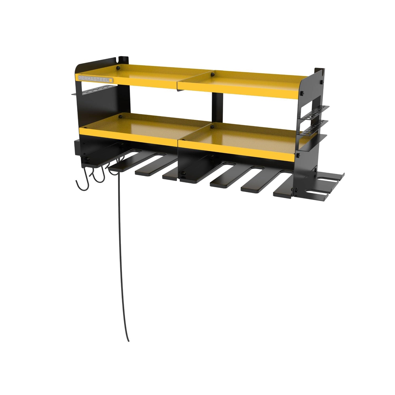 - 【Organize & Optimize Your Space】The organizer features six slots to hold your power tools, four shelves, and a four-outlet power strip with two USB ports. Side holders for drill bits, hand tools and versatile S-hooks provide additional hanging storage for tools, cords, or other accessories