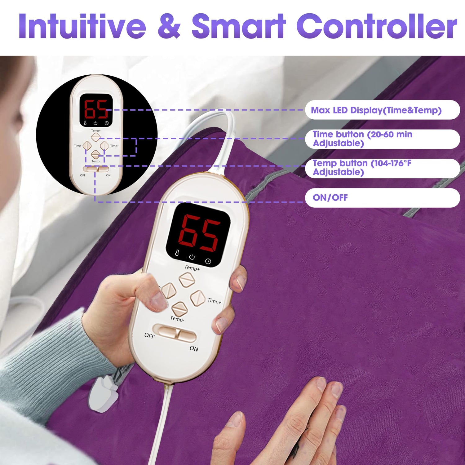 - Warranty: We provide a 30-day refund service and a 1-year warranty. Sauna Blanket Comes with:Removable Natural Jade and Tourmaline Heat Mat、 a blanket、remote、manual、5 sauna liners;