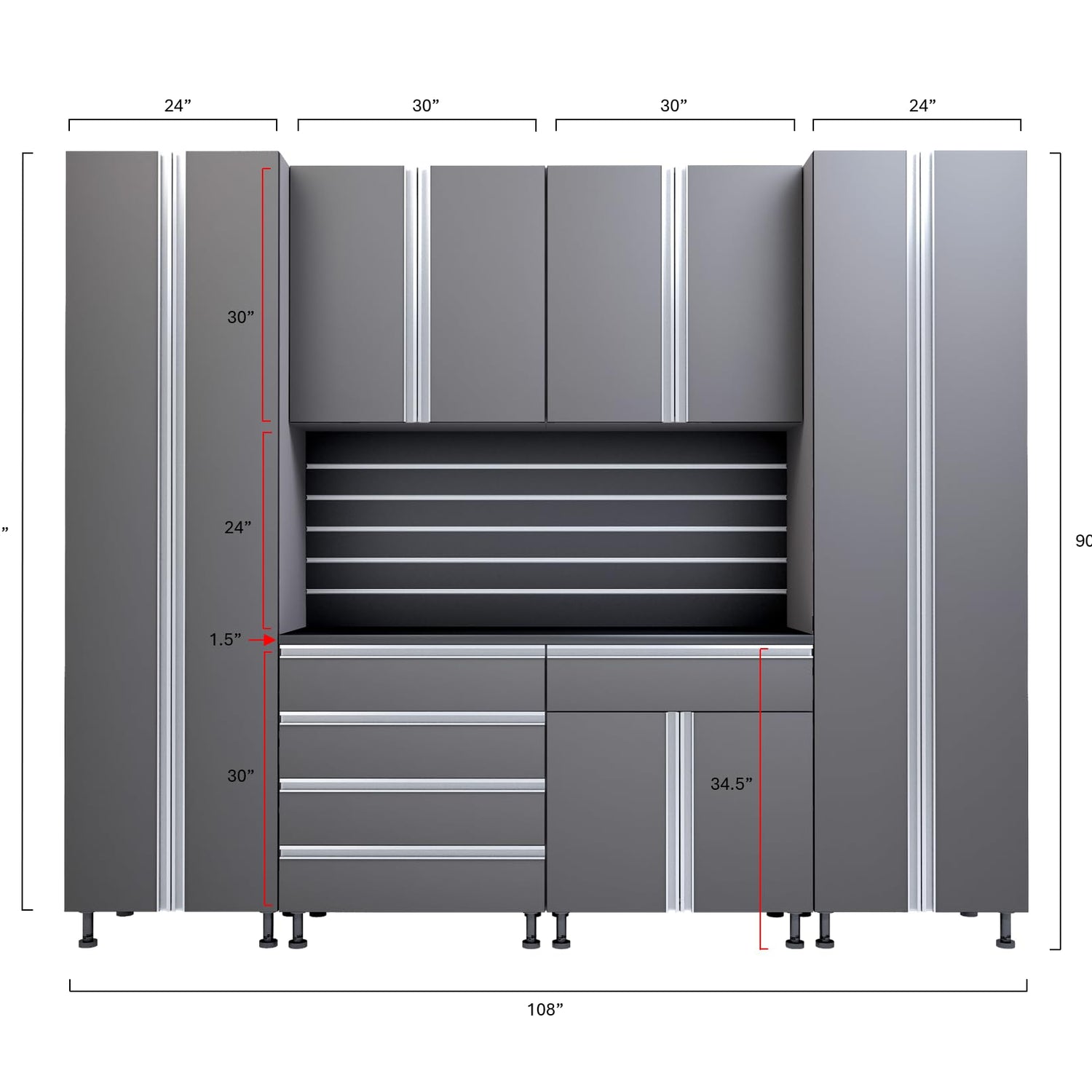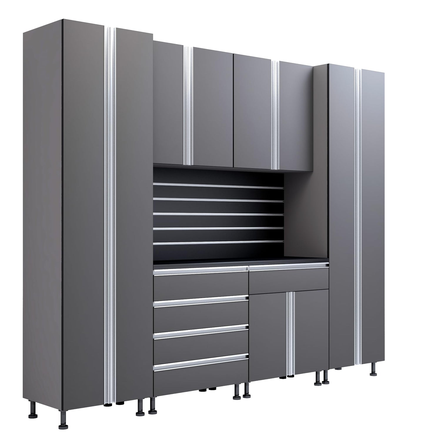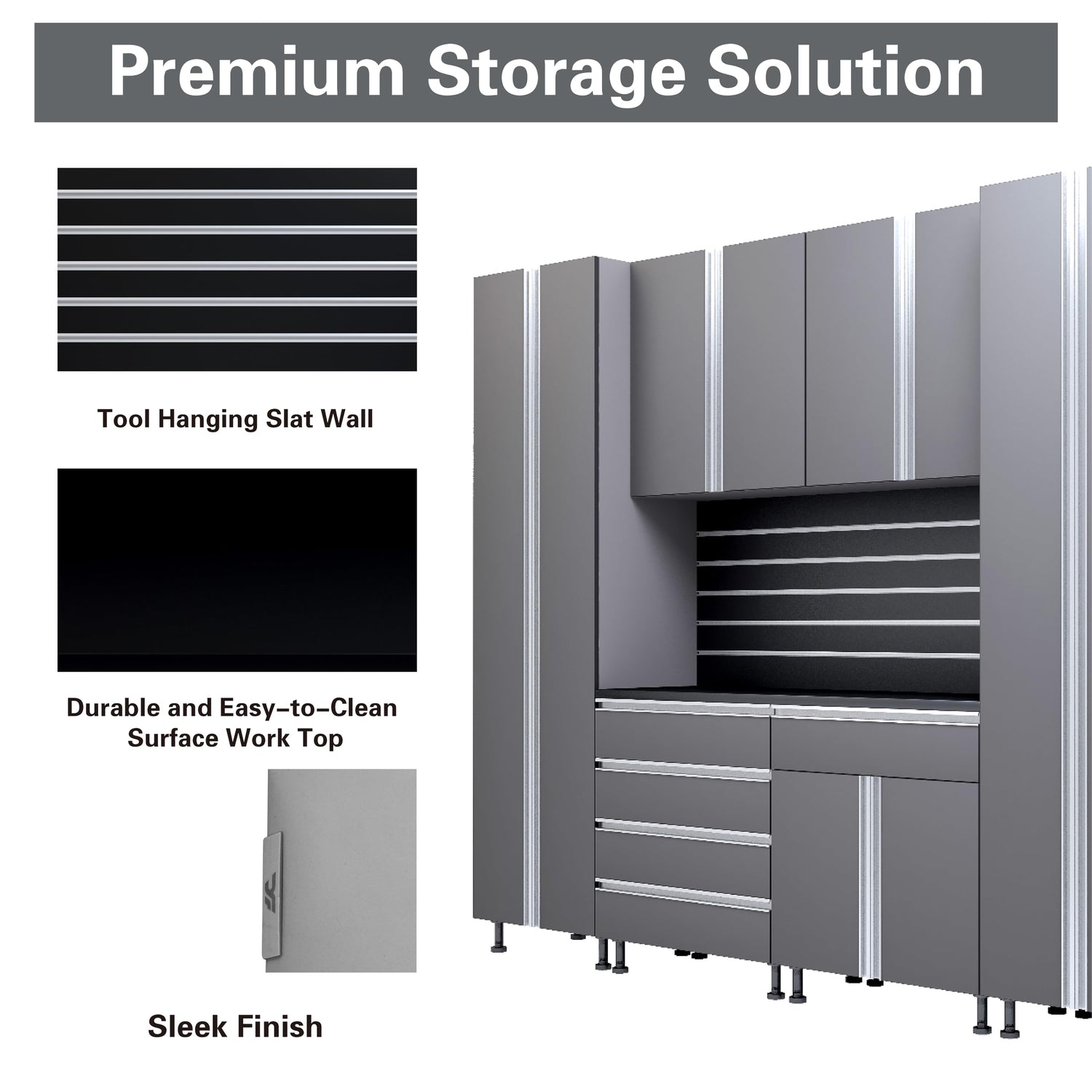Premium Garage Cabinets 9' Storage Sets Solution with Adjustable Legs, Soft-Close Drawer & Door, Integrated Handles, Heavy Duty Plywood Box Construction, Tool and Equipment Organizer (Combo 9CS-012B)