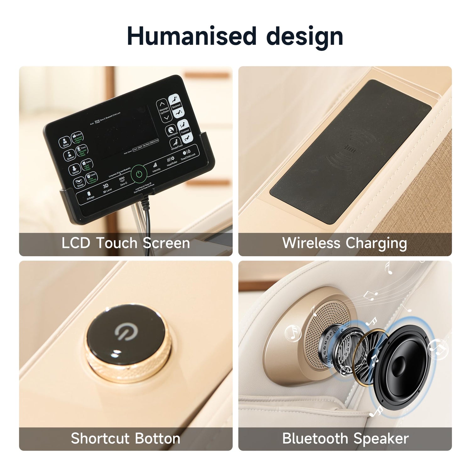 - Zero Gravity Massage Chair - Indulge in deep relaxation with just one button. Our massage chair offers a zero gravity feature, reducing pressure on your heart and maximizing your overall relaxation experience