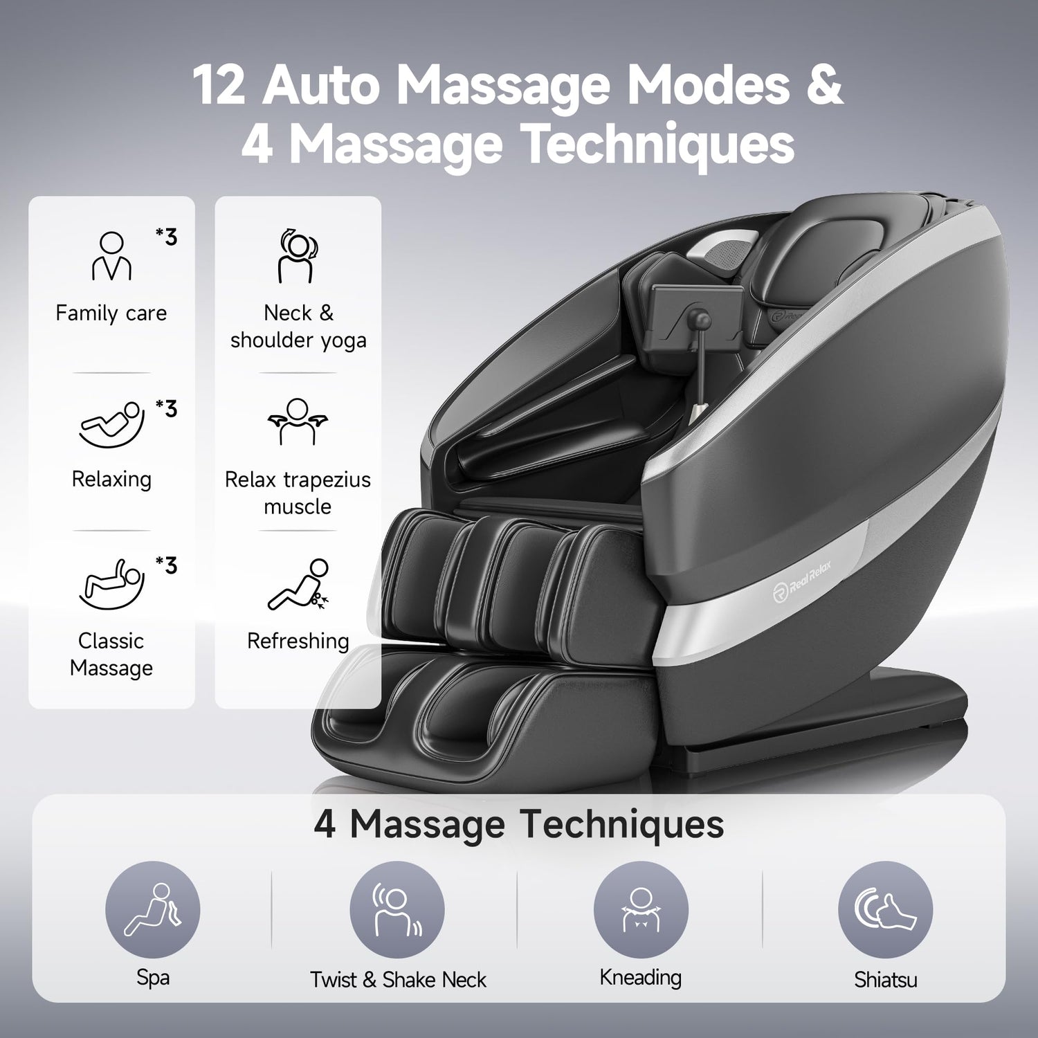 Real Relax Dual Core S Track Massage Chair,Full Body Recliner with Zero Gravity,Rocking Function,Back and Calf Heating,12 Auto Modes,Bluetooth,Foot Roller,Home or Office Use,Gray and Black