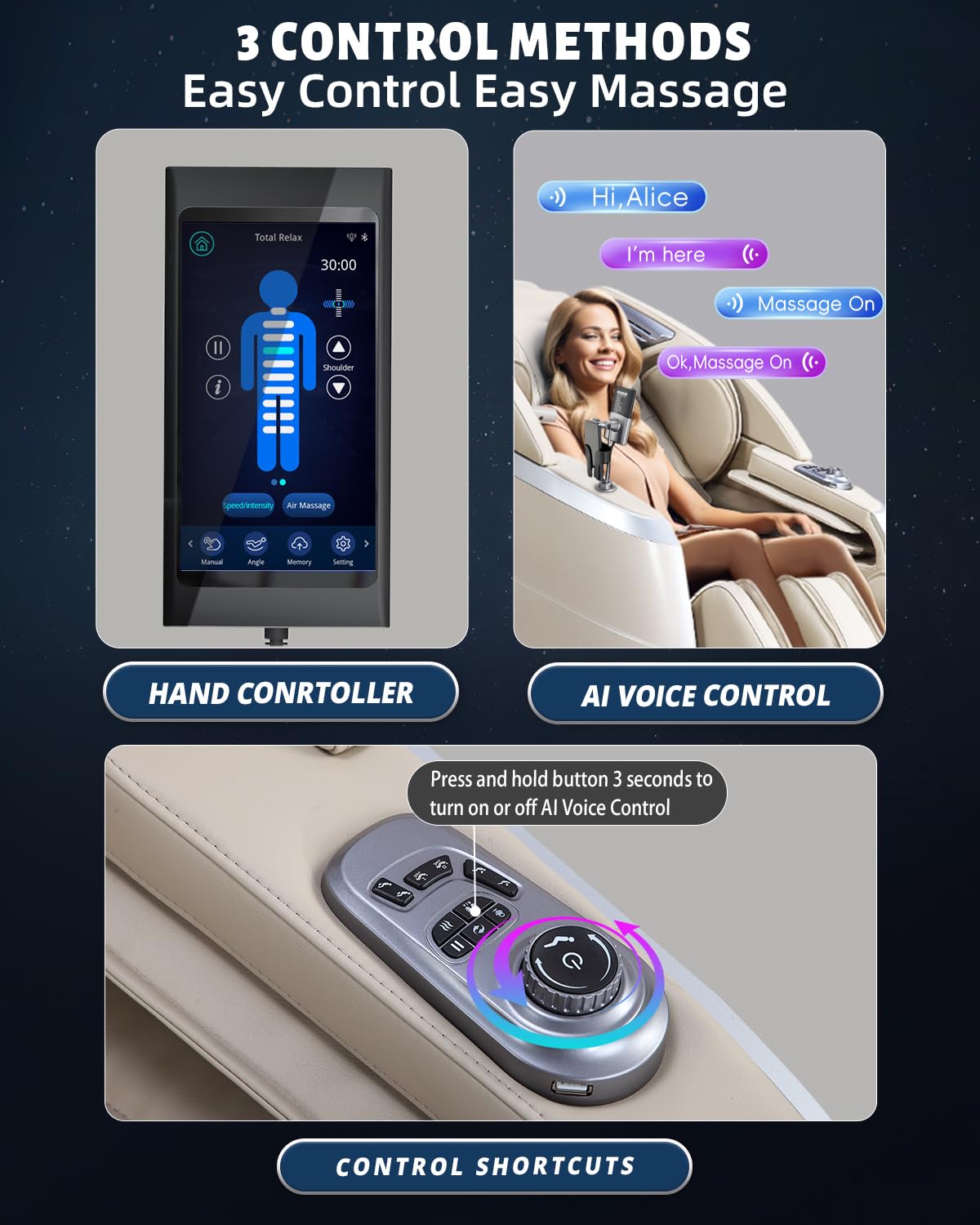 - ✅【Tailored for You Multiple Control Options】Take control of your relaxation journey with our massage chair’s versatile control options. Whether you prefer voice control, a handheld controller, or shortcut buttons, our chair accommodates your preferred method of control. Achieving the perfect massage has never been easier