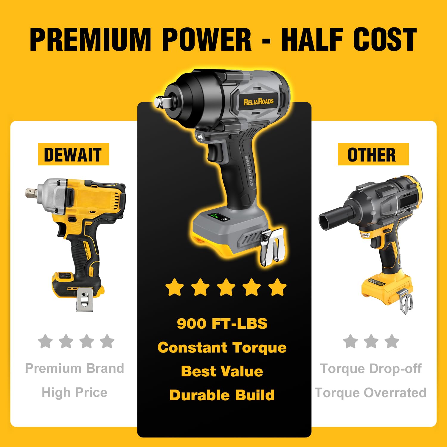 ReliaRoads 900 Ft-lbs Cordless Impact Wrench, 1/2 Inch Impact Gun Compatible DeWALT 20V MAX Battery, Brushless Constant High Torque Impact Driver with 3 Speed, Tool Only (No Battery Included)