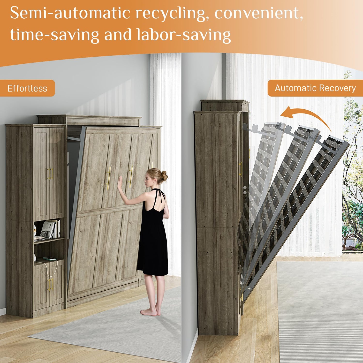 - 【Featuring 2 Cabinet with Adjustable Shelves】With 2 cabinet, this Murphy bed provide more space for you to store home items. And the partitions can be moved up and down, allowing you to freely adjust the height of the storage you need. offering plenty of room for books, clothes, and other essentials.
