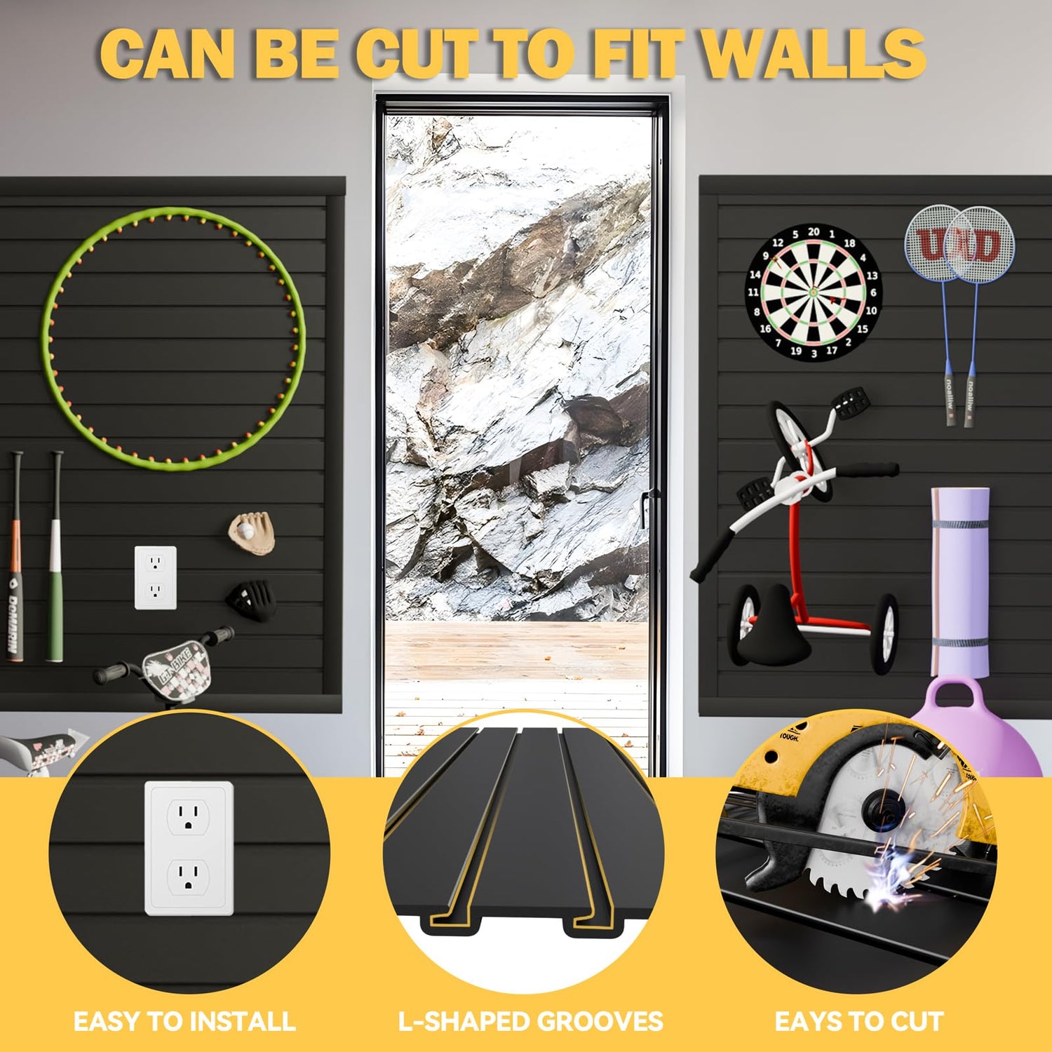 - 【Space-Saving Efficiency】This garage slatwall panels allows you to utilize vertical wall space, making the most of every inch of space. It provides an excellent storage solution for your tools, creating a sophisticated storage system. Say goodbye to a cluttered garage and welcome a meticulously optimized space.