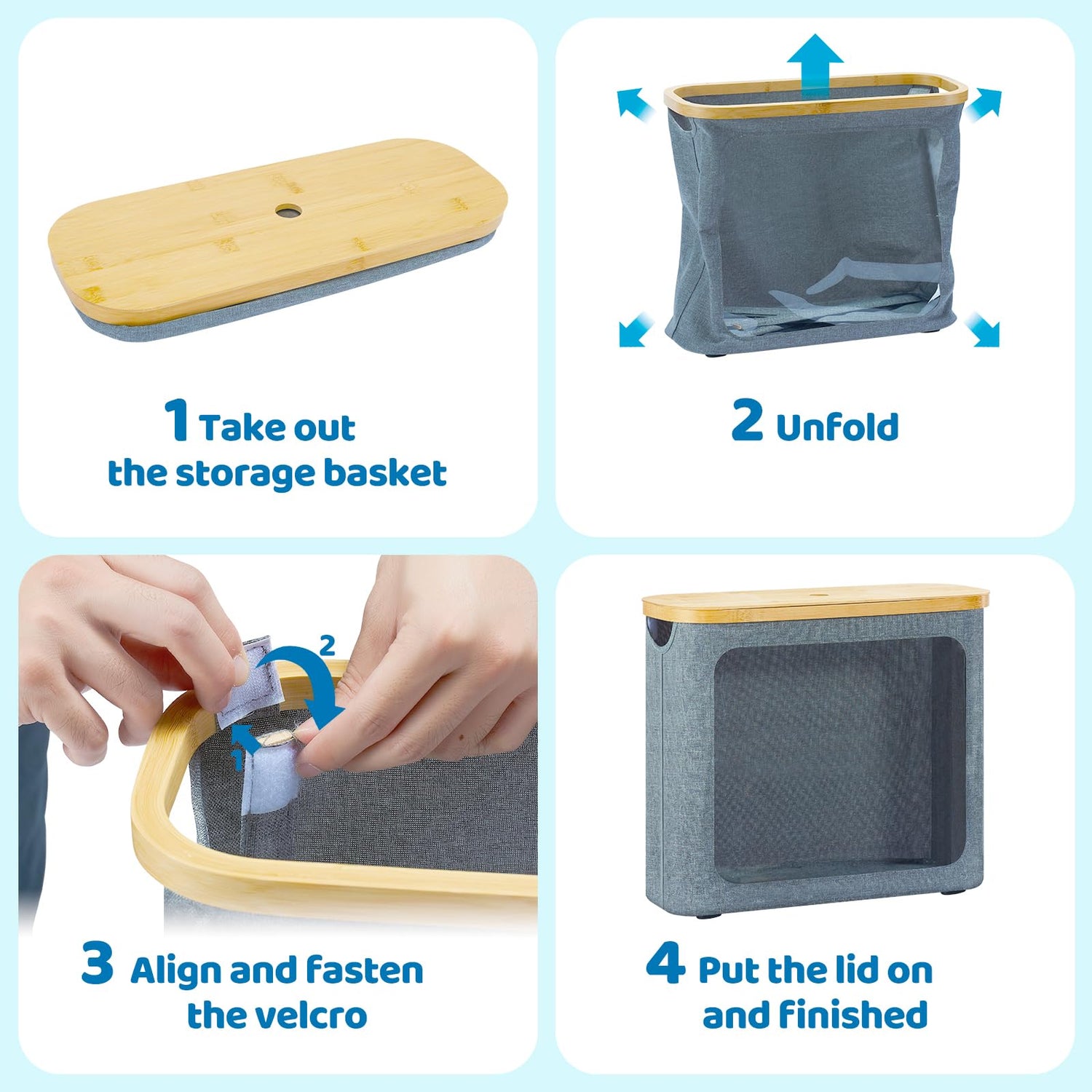 - Stable Support Rods & Collapsible Design: Toilet paper basket with 4 stable support bamboo rods, it can stand up straight. When not in use, you can fold this toilet paper storage basket and store it in a drawer and do not take up any space. Available in 3 different colors!