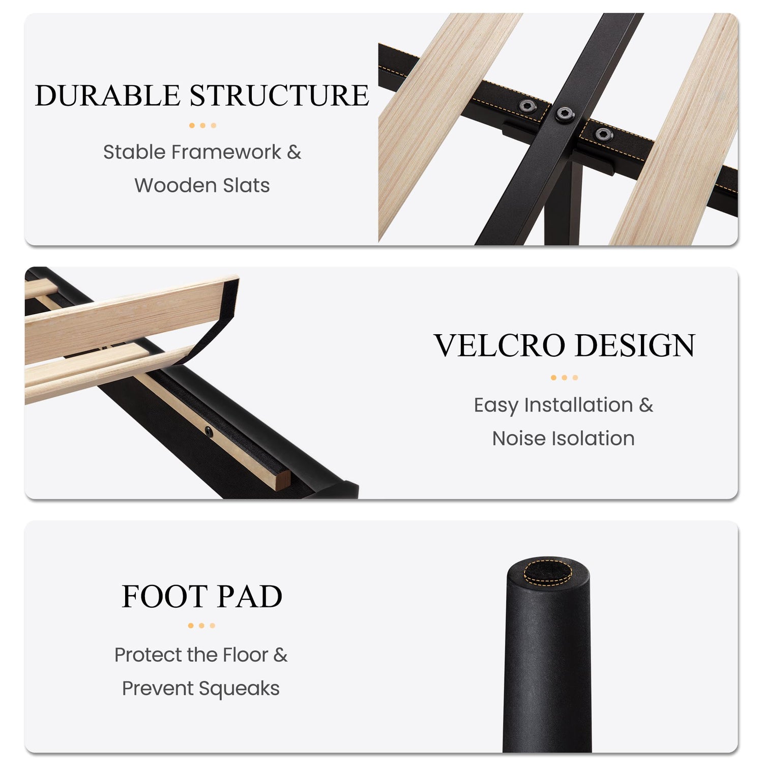 - Easy Assembly: All parts and tools are smartly packed into one box. The assembly of the platform queen size bed frame with headboard could be finished within one hour