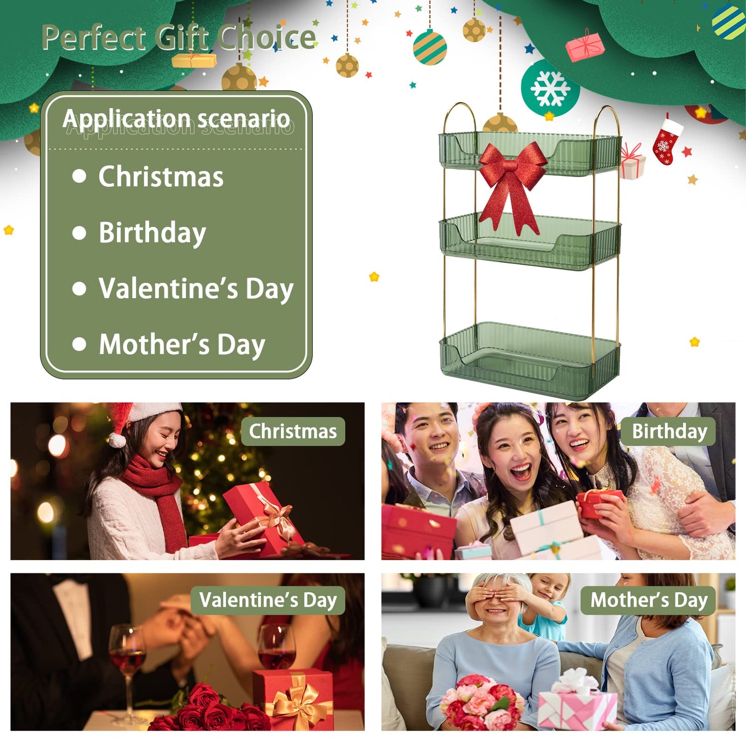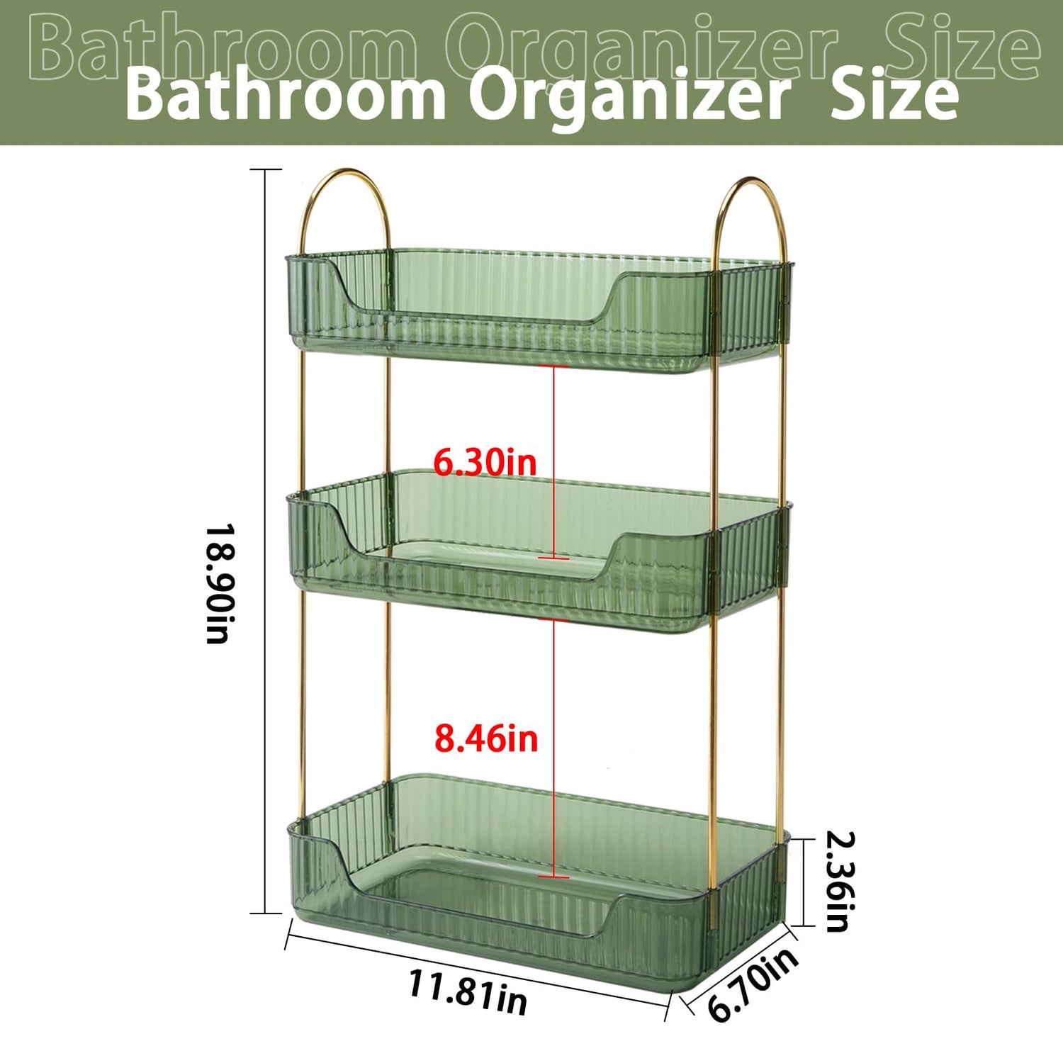 Shuang Qing Bathroom Counter Organizer - Countertop Storage, Cosmetics & Skincare Shelf, Makeup & Perfume Organizer, Spice Rack for Kitchen (3 Tier - Green)