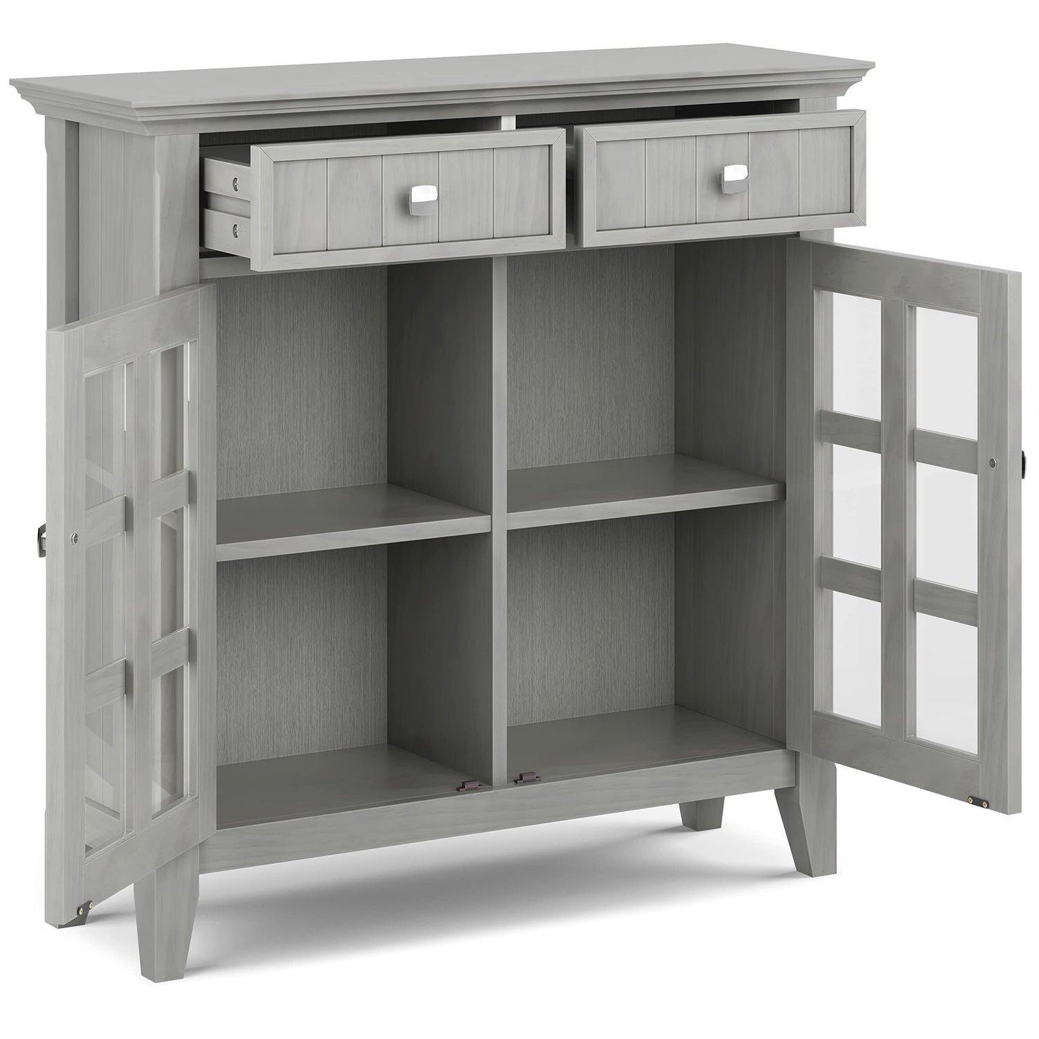 SIMPLIHOME Acadian SOLID WOOD 36 Inch Wide Rustic Entryway Hallway Storage Cabinet in Fog Grey, For the Living Room, Entryway and Family Room