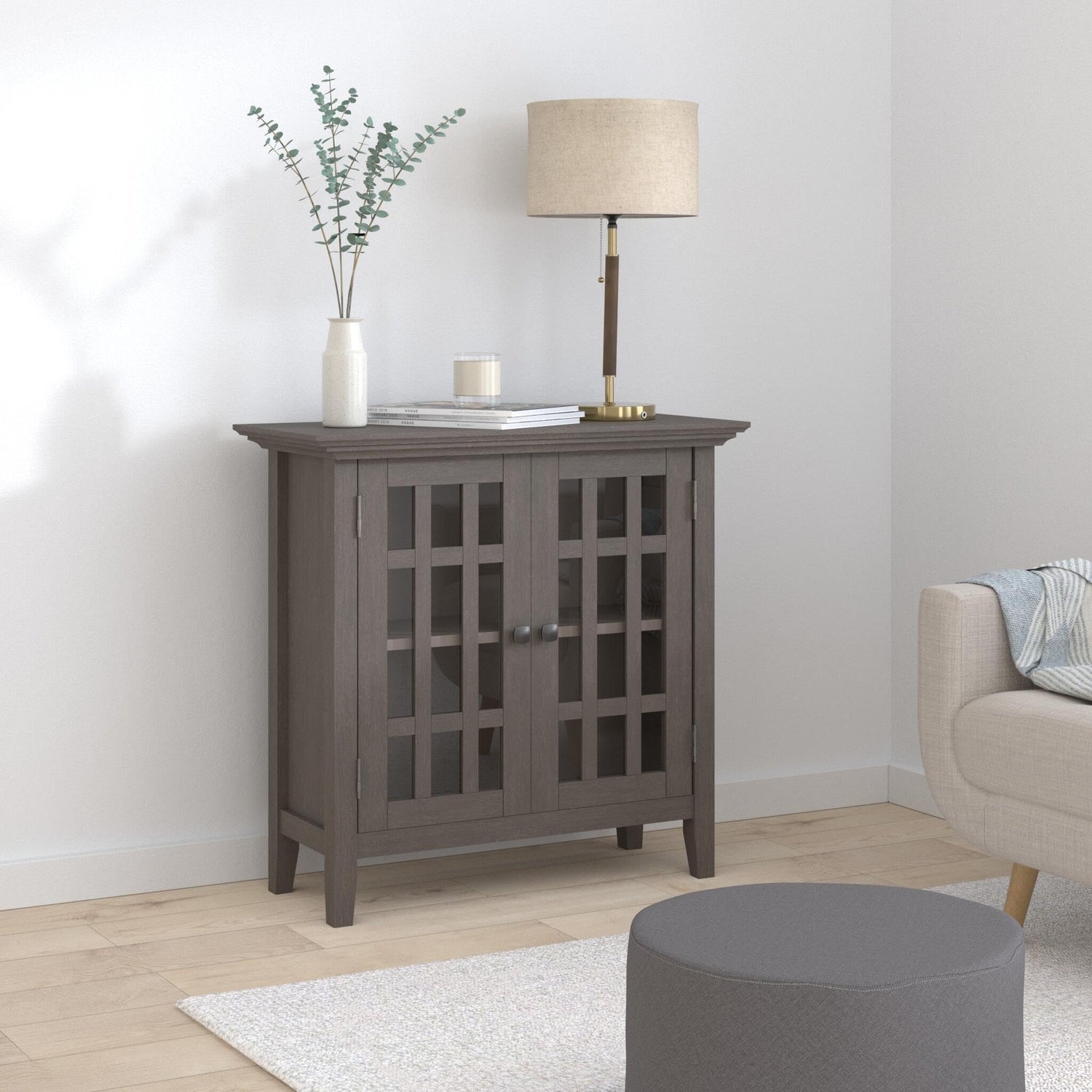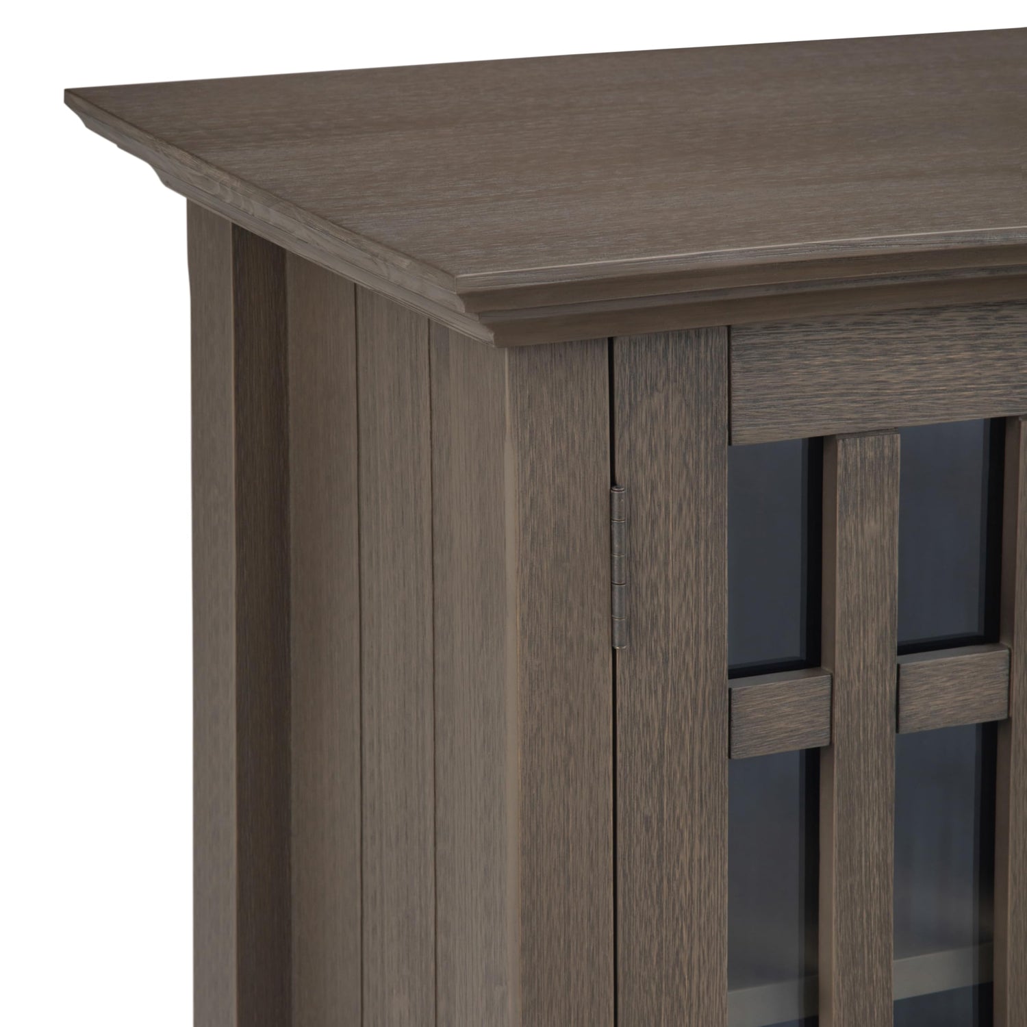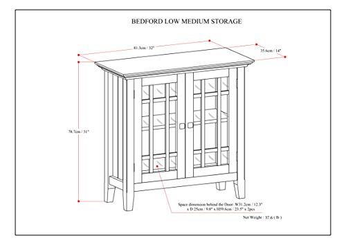 SIMPLIHOME Bedford SOLID WOOD 32 inch Wide Transitional Low Storage Media Cabinet in Farmhouse Grey for the Living Room, Entryway and Family Room
