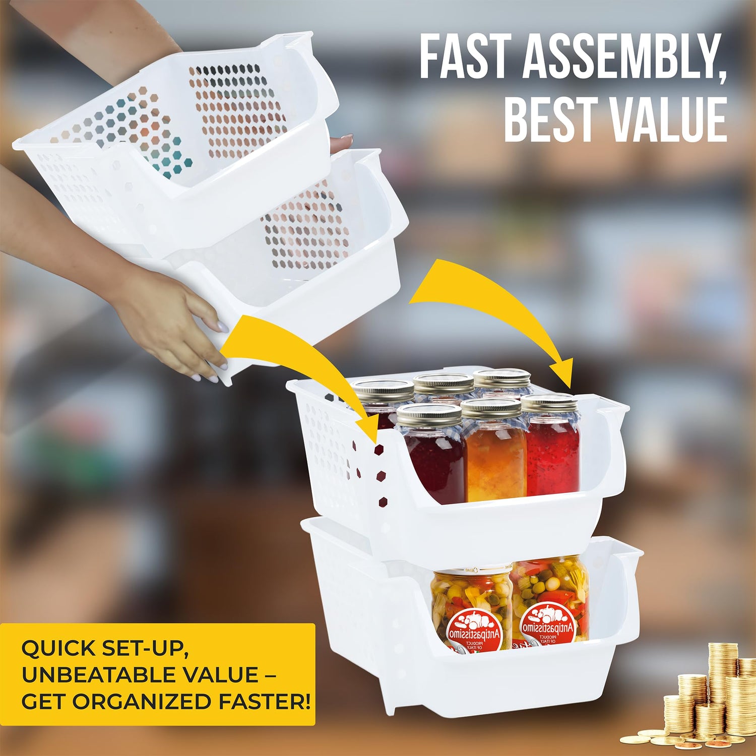 Skywin TidyFriend Stackable Storage Bins for Pantry, 4 Pack Stackable Bins For Organizing Food, Kitchen, and Bathroom Essentials (White)