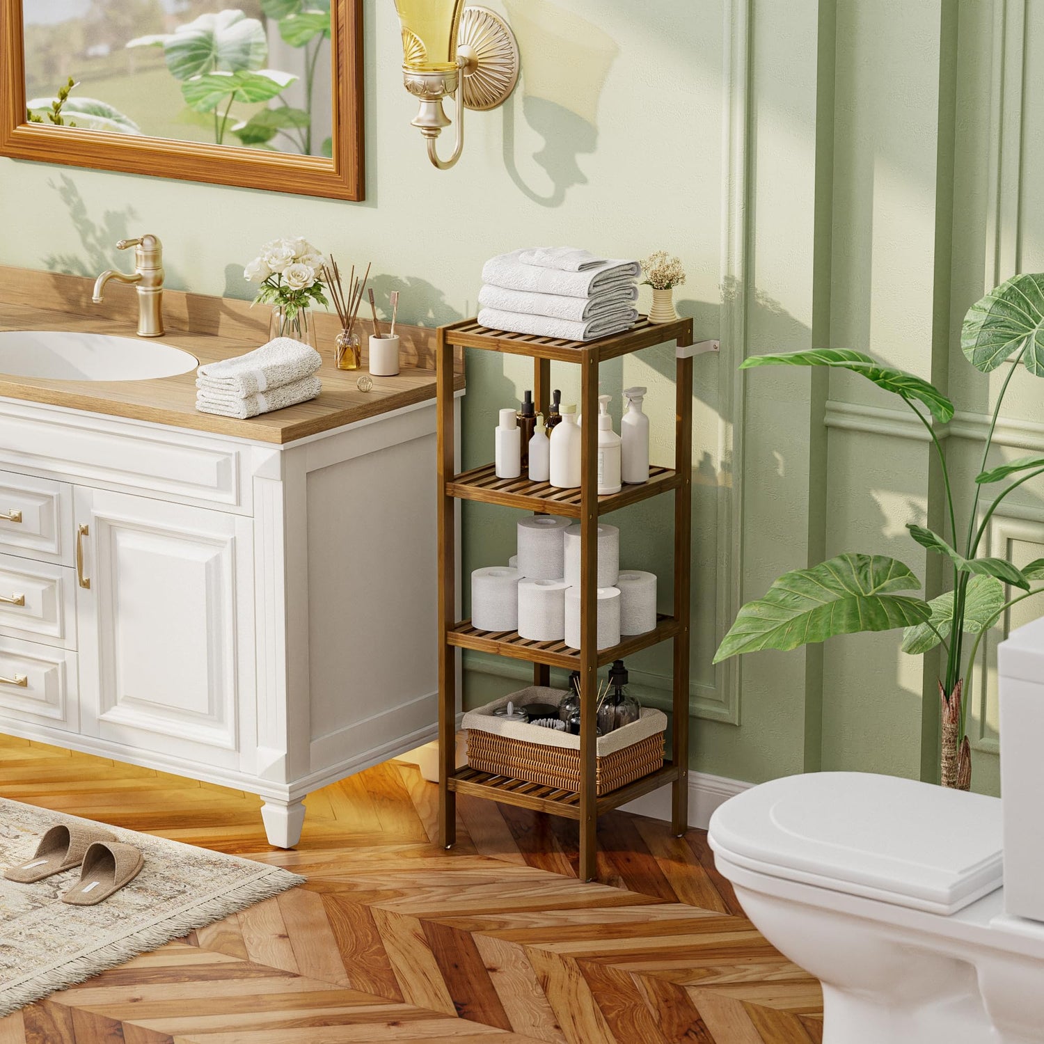 SMIBUY Bathroom Storage Shelf, 4-Tier Bamboo Rack Organizer, Multifunctional Shelving Unit for Living Room Bedroom Kitchen (Walnut)