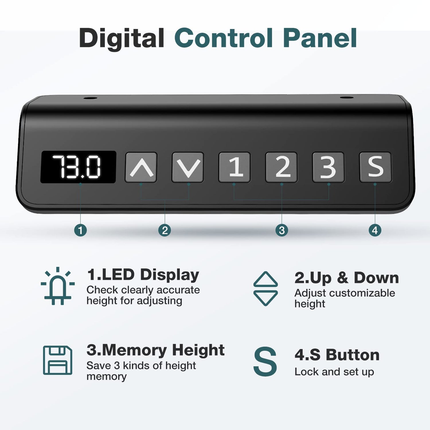 - đăSmooth Height Adjustable Standing Deskă: This standing desk help you work in a healthy way which aim to help you to sit and stand by changing the height throughout the day working, relieve leg numbness and back or neck fatigue caused by long sitting, makes your energy more concentrated and improve efficiency of working. You can adjust the height from 28.3" to46.5" freely, or click your preset 1/2/3 button quick to your comfortable using height. Accurately and Smooth up and down.