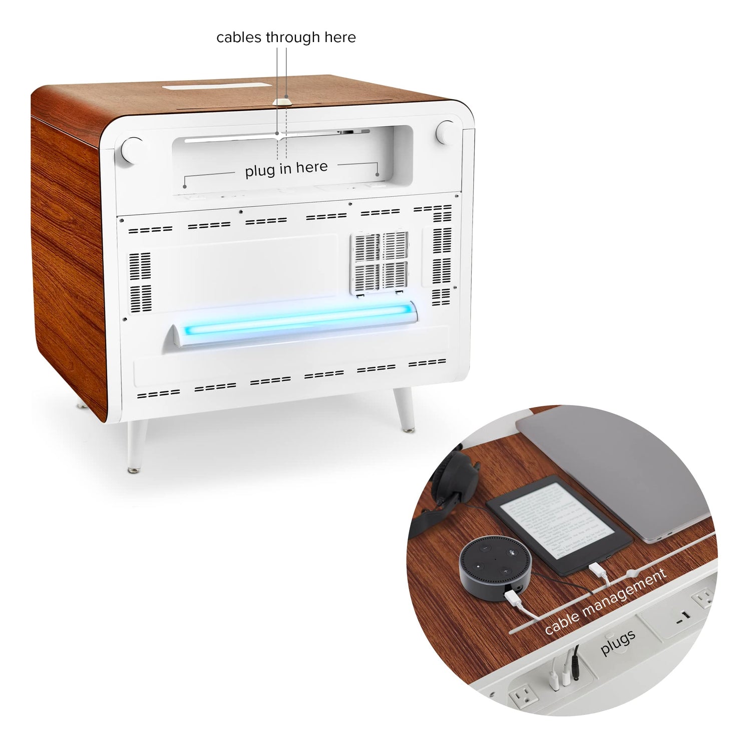 Sobro Smart Side/Nightstand Table - with Cooling Drawer, Wireless Charging, Bluetooth Speakers, USB-C and 120V outlets, LED Light, Wood/White