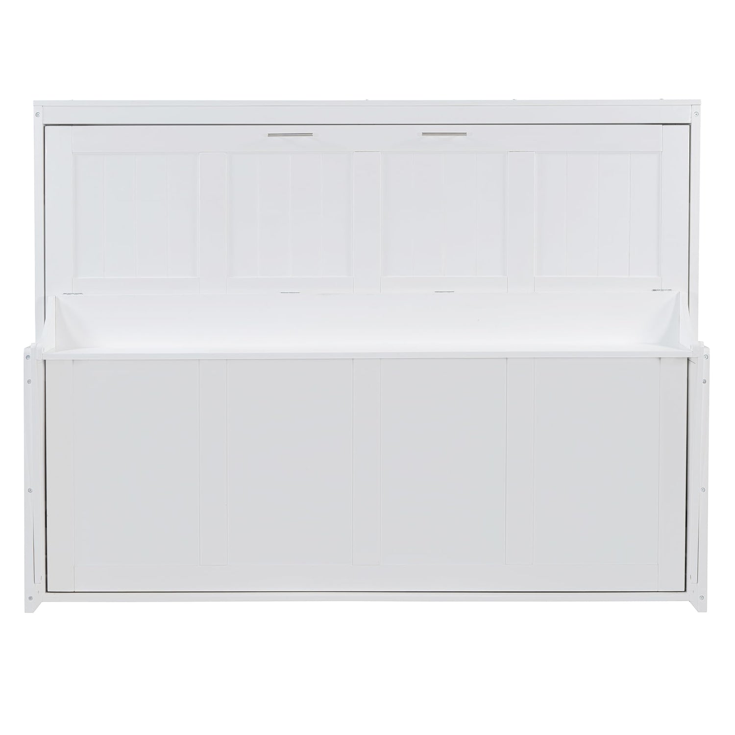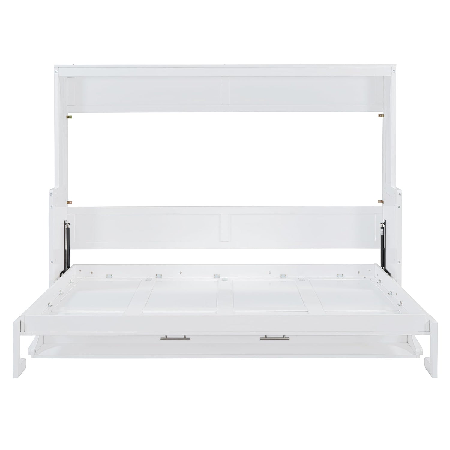 SOFTSEA Queen Size Horizontal Murphy Bed with Desk, Murphy Bed can be Folded into a Cabinet, Hideaway Wall Bed Frame Space-Saving for Guest Room Bedroom Office, White