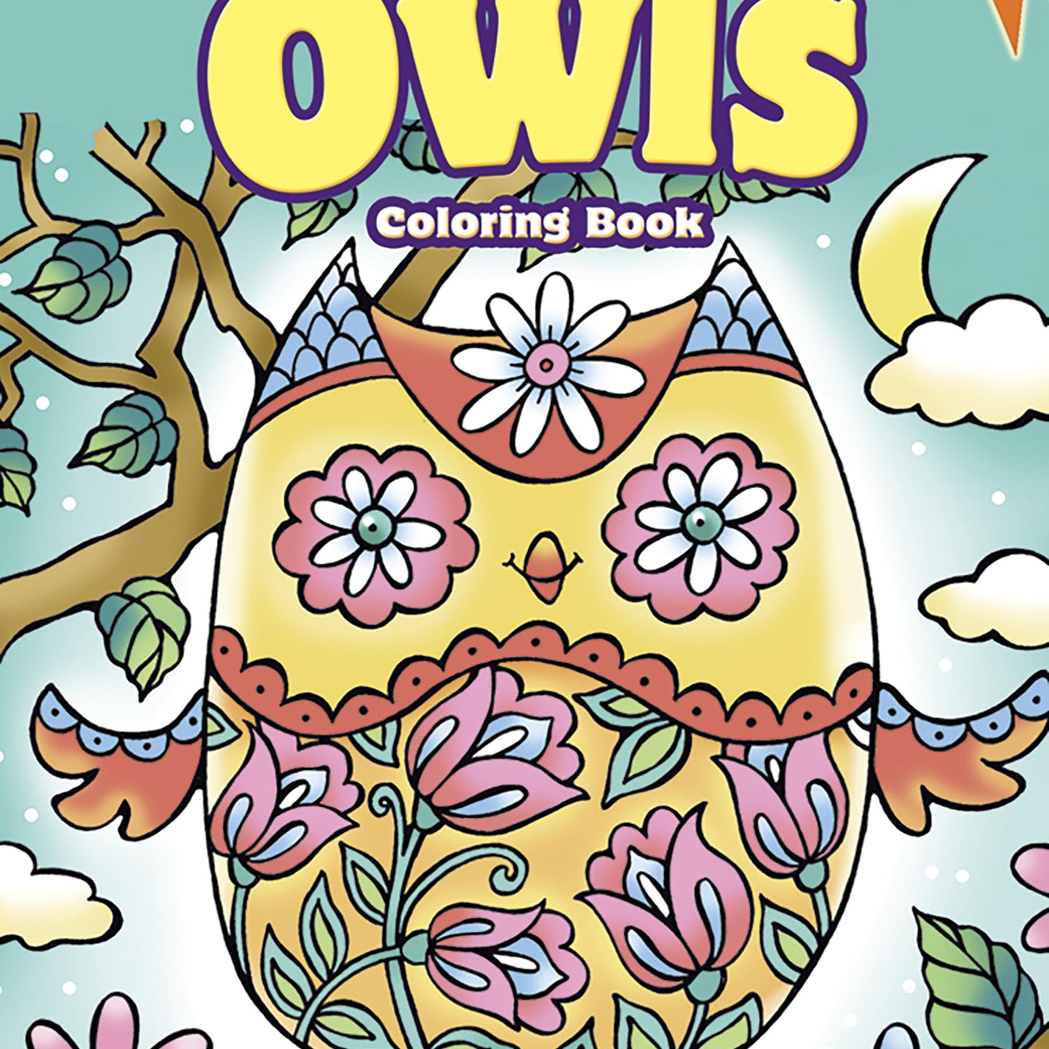 • Here is a coloring book that creative kids will give a hoot about! Thirty whimsical illustrations of owls find the beautiful birds perched on branches, surrounded by flowers, silhouetted against cloudy skies, and nestled into other detailed settings