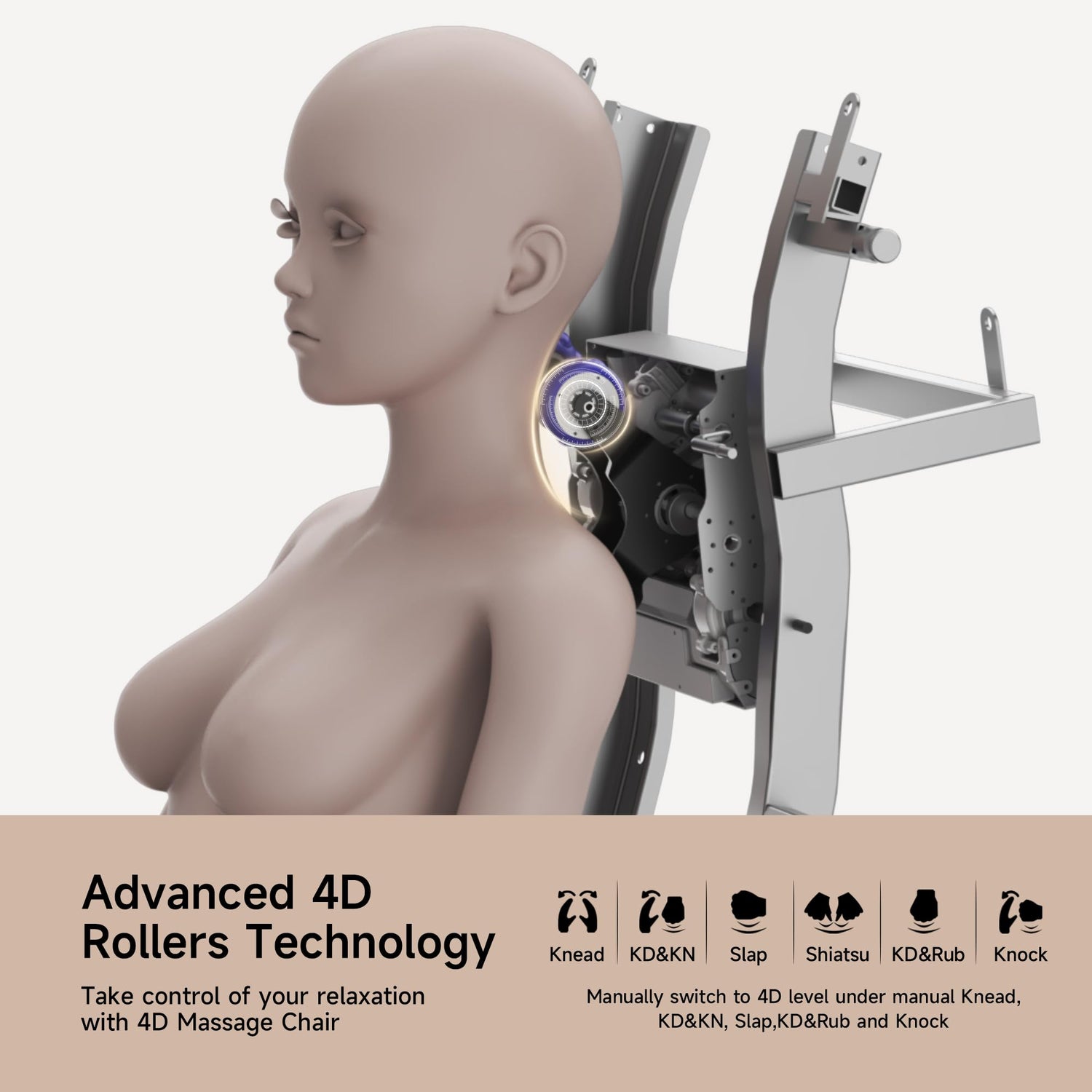 - SL Track & 4D Massage Rollers - Ergonomic SL track fits your body's natural curve and provides massage from neck to hip. 4D massage rollers imitate the hands of human, realizing multi-directional and three-dimensional massage
