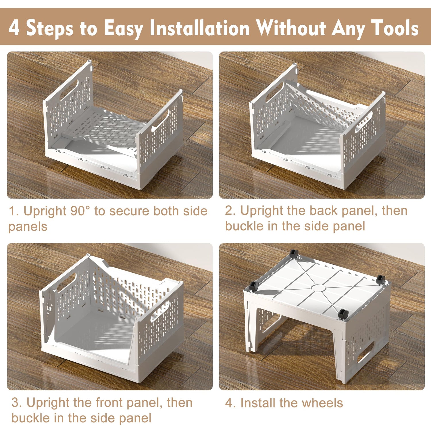- 【Stackable & Removable】:The closet organizer storage box is made of thickened PP plastic, sturdy, lightweight but strong load-bearing, durable to extra last long. The plastic folding storage box can be used individually or stacked to fit your space or according to your needs. The snap design on both sides help to keep them from tipping over when stacked. Moreover, there are 4 360° rotating wheels on the bottom of the storage bins for easy moving
